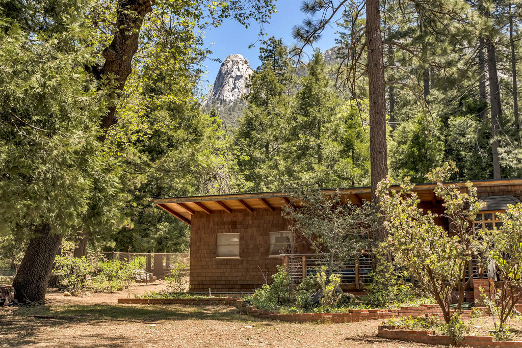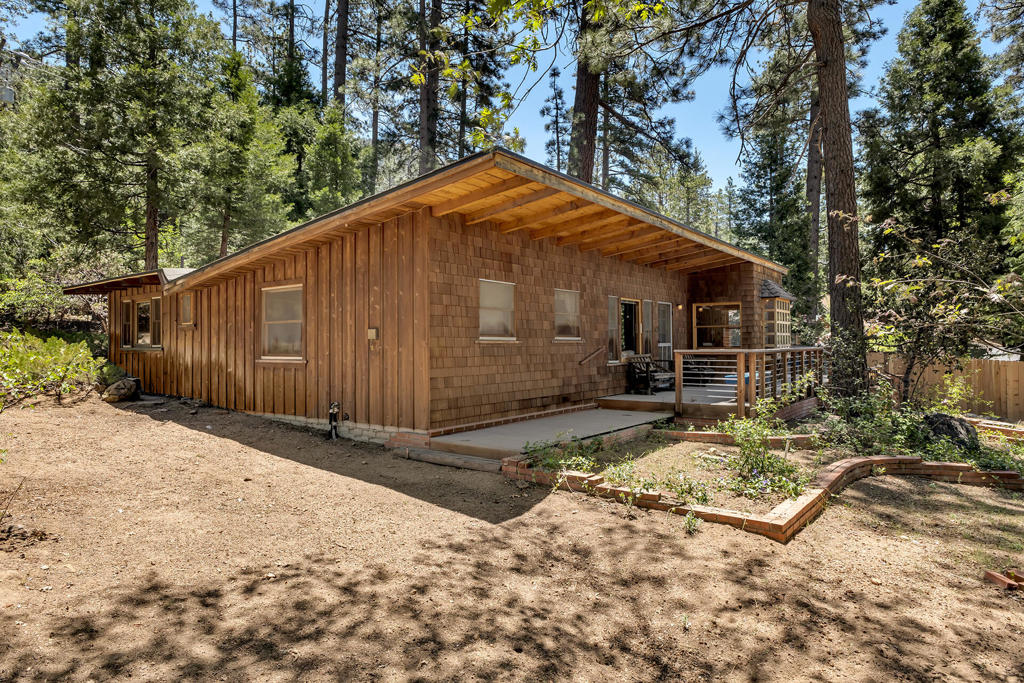 ORIGINAL AND UNSPOILED GEM. Beautifully maintained mid-century built home with clean angular lines complemented by an appealing open floor plan and expansive composite decking and patio areas providing multiple outdoor spaces for relaxing and enjoying the natural surroundings. Dramatic beamed ceilings and natural pine paneling highlight the charming interior with rock fireplace and classic finish details including custom built-ins. In addition to the spacious kitchen with hand crafted cabinets and original formica countertops, there is a light and bright dining room with multiple view windows, including a unique bay window with a modernist geometric grid pattern. There are 2 bedrooms and 1.75 baths, including a large dormitory size primary bedroom with bath and exterior access. Situated on a beautiful, near level 10,000+ square foot parcel in desirable Fern Valley, with Lily Rock views, a circular driveway and lots of parking. A new roof has just been installed along with some newly installed fencing. Selling furnished, including kitchenware.