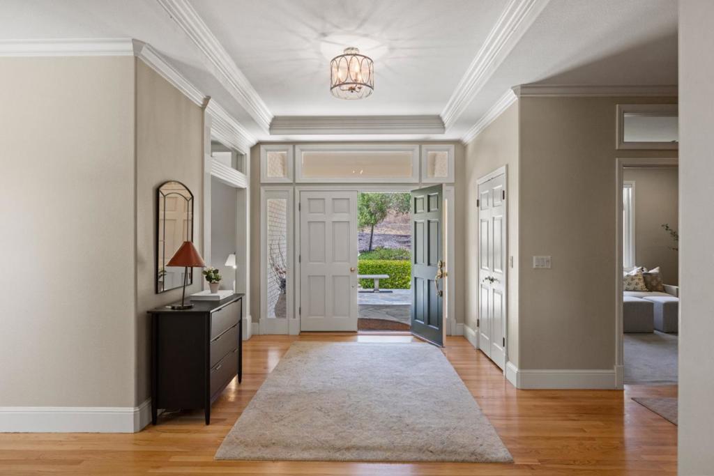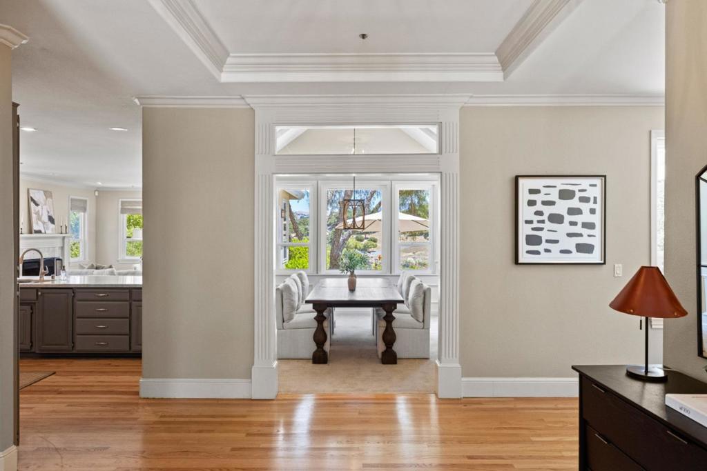 Embrace the Carmel Valley lifestyle in this desirable Vista El Encanto community. Set on 1.83 acres this elegant 4-bedroom, 3-bathroom residence offers 3,158 sq. ft. of thoughtfully designed living space with sweeping views of oak-studded hills and scenic views of Steinbeck’s “Pastures of Heaven”. Just 20 minutes from the ocean, Carmel-by-the-Sea, Pebble Beach, and Monterey, the location combines tranquility with convenience. Featuring soaring ceilings, abundant natural light, and three fireplaces including a cozy one in the spacious primary suite. This home seamlessly blends comfort and sophistication. Expansive windows frame the stunning natural surroundings, creating a harmonious indoor-outdoor living experience. Ideal for entertaining, the property boasts three distinct yards, a sparkling pool and spa, a charming pool house, and a private artist studio. Located just moments from the Chamisal Tennis Club, this retreat epitomizes California living at its finest.