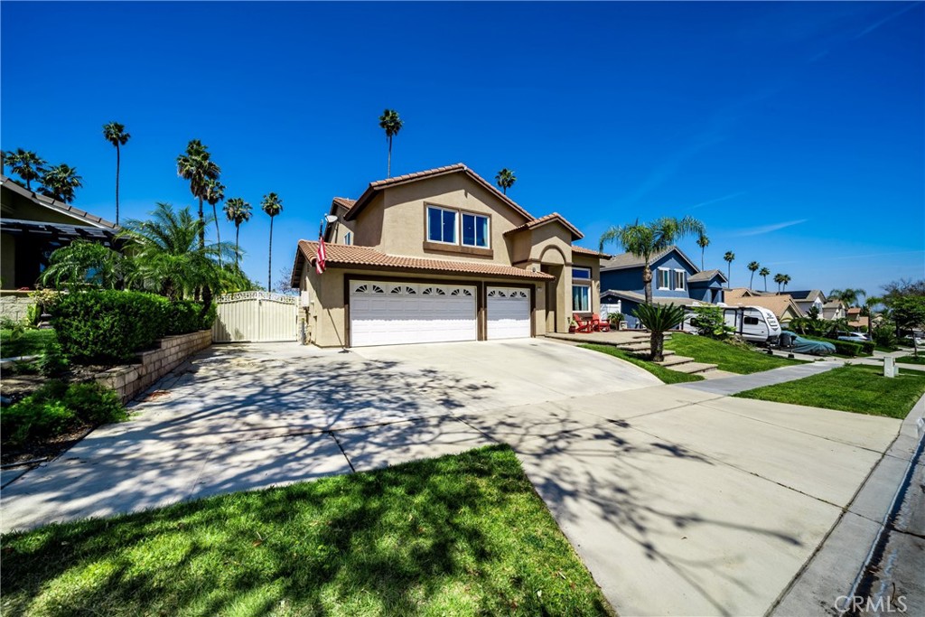 POOL * SPA * BOAT PARKING * MOVIE ROOM *THIS ONE HAS IT ALL! Welcome to this beautifully upgraded and versatile home designed for both everyday living and entertaining. From the moment you arrive, you’ll notice pride of ownership and thoughtful upgrades throughout. Step inside to a warm, inviting interior featuring TILE FLOORING DOWNSTAIRS and HARDWOOD AND TILE FLOORING UPSTAIR , complemented by CROWN MOLDING and a seamless, functional layout. The WROUGHT IRON staircase showcases HARDWOOD FLOORING ,creating a cohesive design. The main living space includes a BUILT-IN BAR WITH WINE FRIDGE AND MINI FRIDGE and SURROUND SOUND IN THE LIVING ROOM, perfect for entertaining. Enjoy a flexible floor plan with a DOWNSTAIRS 5TH BEDROOM (CURRENTLY USED AS AN OFFICE, EASILY CONVERTIBLE) and a FULLY REMODELED DOWNSTAIRS BATHROOM WITH WALK-IN SHOWER. The DOWNSTAIRS LAUNDRY ROOM WITH SINK AND AMPLE STORAGE adds convenience. Additional features include TANKLESS WATER HEATER, WHOLE HOUSE WATER SOFTENER FILTRATION SYSTEM, WATER FILTRATION SYSTEM IN THE KITCHEN, QUIET COOL WHOLE HOUSE FAN, and a 3-CAR GARAGE WITH EXTENSIVE STORAGE. Upstairs offers a versatile LOFT CURRENTLY USED AS A MOVIE ROOM WITH HARDWOOD FLOORING, BUILT-IN MINI FRIDGE, BAR AREA, AND RECESSED LIGHTING. Bathrooms are upgraded, including an UPSTAIRS BATHROOM WITH TRAVERTINE FINISHES. The primary suite is a private retreat featuring a FLOATING VANITY, DUAL SHOWER HEADS, TRAVERTINE FINISHES, CUSTOM CLOSET, AND SEPARATE SOAKING TUB. Step outside to a backyard designed for enjoyment with a POOL AND SPA, MINI GOLF AREA, and BOAT PARKING. The exterior features STUCCO AND VINYL FENCING, along with a REDONE ROOF OVER WOOD PATIO COVER and OUTDOOR STEP LIGHTING. This home offers an exceptional blend of upgrades, space, and lifestyle.