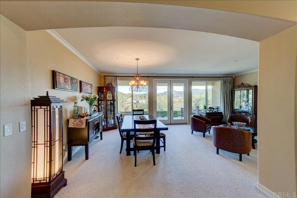 Discover this stunning single-story Tuscan inspired estate in the prestigious gated community of Montreux in North Escondido. Perfectly positioned to capture sweeping mountain views from nearly every room & outdoor living space. This home offers an elegant blend of warmth, sophistication & effortless California living- with a touch of Italian charm. As you drive up the long palm lined driveway you can feel the days stress melt away. An inviting foyer welcomes you leading into hand-scraped hardwood flooring that flows through the formal living & dining rooms where expansive windows frame picturesque views. The heart of the home is the beautifully appointed chef’s kitchen featuring a dramatic quartzite island with farmhouse sink, double ovens, warming drawer, microwave, wine beverage cooler & a spacious walk-in pantry. Designed for gathering, the kitchen opens seamlessly to the expansive family room, the perfect setting to enjoy the big game or relax fireside. Architectural details elevate the interior including crown molding, coffered ceilings & refined custom finishes throughout. The private primary suite is a tranquil retreat offering French doors to the covered patio where cool evening breezes & mountain views create a serene escape. The luxurious ensuite bath includes dual vanities, a sit down vanity area, jetted soaking tub, oversized shower & two generous walk-in closets. Each secondary bedroom also features its own walk-in closet, providing comfort & convenience for family or guests. The living room, dining room & patios are wired for surround sound, making indoor-outdoor entertaining effortless. Additional highlights include dual-zoned heating & air, low maintenance landscaping with sprinkler & drip systems, two car & oversized one car (currently set up as a gym) garage, a huge variety of fruit trees (see attached list), ornamental Australian Willows & Magnolias, owned solar & gen 3 Tesla wall connector & so much more. A true entertainer’s dream in one of North Escondido’s most desirable gated communities.