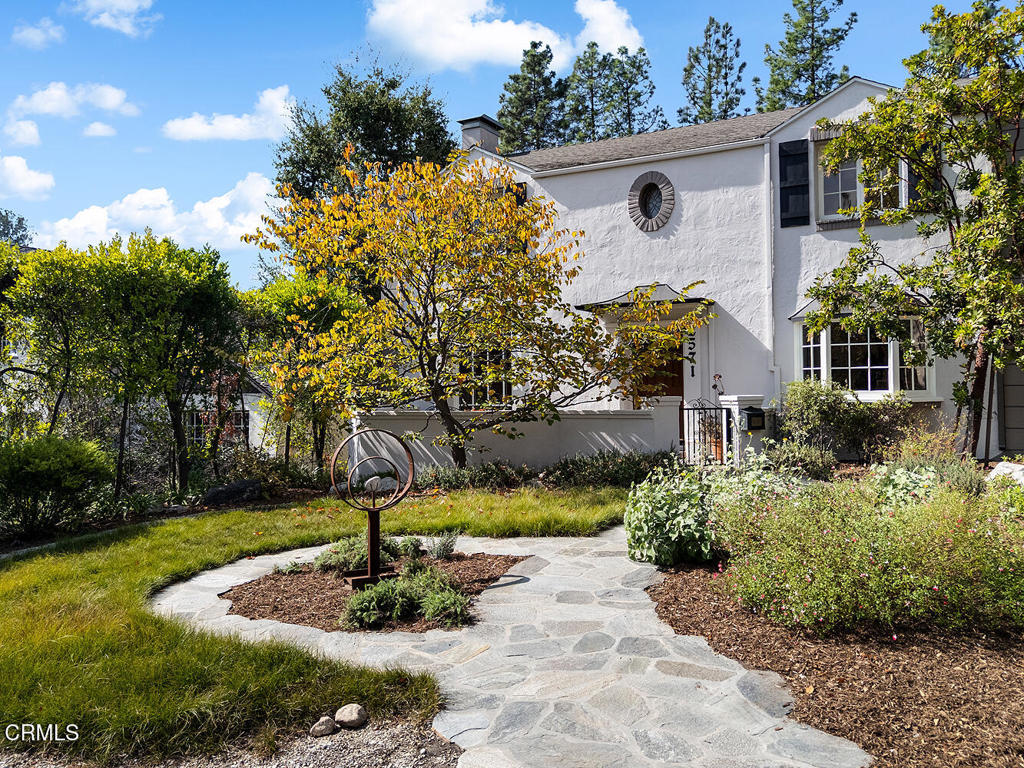 This elegant 1932 colonial on Altadena’s Boulder Road is a gem. Preserved architectural elements like hand-troweled stucco, classic brick work and symmetrical facade with large windows provide curb appeal and a welcoming presence. The property is anchored by the street’s eponymous granite boulders and handsome curving stone front path around a native grass meadow, with a quiet front patio just beyond a sculptural Redbud tree. A generous paneled wood front door opens to reveal rich oak hardwood floor and plaster walls; the quality and craftsmanship here would be impossible to duplicate in 2025. Comprising over 3000 ft, this 4 bedroom, 3 bath home features hand-finished coved ceilings and flattened arches throughout the public rooms. On the south of the ground floor, a grand living room offers a generous decorative fireplace, casement windows, and French doors opening to the backyard. To the north, the formal dining room with bay window and built-in cabinetry. Both the dining and living rooms connect to the home’s generous designer kitchen, featuring custom cabinetry, incredible artisan tilework that elevates the every day to the extraordinary. Rich stone countertops, Shaws farmhouse sink, top of the line fixture and stainless steel appliances, are a chef’s dream. A convenient powder room and pantry provide access to the driveway for quick unloading and easy entertaining. Past the kitchen office niche, down a few steps find a spacious family room with soaring ceilings, walls of windows, a second fireplace and access to the backyard. A fabulous bonus: sprawling basement with pantry and storage is just steps down from the family room. Bedrooms and private spaces can be found on the second floor, up a terracotta-hued magnesite floor staircase, a piece of craftsmanship to be cherished. Four bedrooms enjoy natural light, views and ample closet space. The large primary suite offers incredible mountain views, a full ensuite bath, with soaking tub and direct access to balcony overlooking the backyard. Another stylish full bath boasting custom tile work, stone countertops, and skylight, and the windowed laundry room with its own sink complete the upper level. Outside, the entertainer’s backyard is fenced with a covered outdoor kitchen and dining patio space and backyard punctuated by more spectacular granite boulders. Incredible mountain views, proximity to beloved local spots…this is a rare opportunity to own a piece of historic architecture in the foothills.