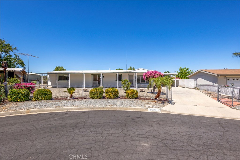 ** PRICE REDUCTION **Welcome to Bautista Estates, a 55+ Community in East Hemet! Enjoy low HOA fees and a beautifully updated 1,440 sq ft manufactured home nestled at the end of a quiet cul-de-sac. Step into a bright formal living and dining area filled with natural light from large windows. The open-concept kitchen and family room offer the perfect space for everyday living and entertaining. The kitchen features newly painted cabinets, modern appliances, and an island with a built-in cooktop. The family room includes a custom bar and opens to a covered front patio—ideal for gatherings with family and friends. The spacious primary bedroom boasts fresh paint and new flooring, while the en-suite bathroom includes a walk-in shower, updated vanity, and sink. The guest bedroom is private and roomy, complete with mirrored wardrobe doors and easy access to a full guest bath with a tub/shower combo. Additional features include an inside laundry/utility room, a large Arizona room, a detached shop, and a covered carport. The entire property is fenced and landscaped for low maintenance, offering comfort and privacy. Upgrades include newer laminate flooring, interior paint, and ceiling fans throughout. Don’t miss this great opportunity—schedule your tour today!