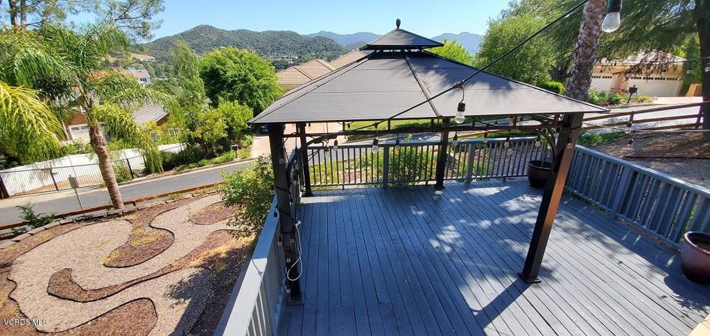 It is hard to believe you can reside in the Lake Sherwood area at such a value and affordable price, but it is true! This bright and highly updated (many upgrades recently) gingerbread cottage style single family home for lease features all of the following: A spacious great room design with a stone accented fireplace. A separate dining area with views and direct rear yard/deck access. An updated chef inspired kitchen with granite countertops, custom cabinetry, high-end (Wolf & Bosch) S/S appliances including a refrigerator & newer range hood (not pictured), breakfast/lunch bar and even a TV to watch your favorite foodie shows. Two generously sized and bright bedrooms (one with wood beamed & accented ceiling) with step-in closets and separate updated 1.5 bathrooms with high end fixtures/appointments. A private home office offers lovely views and custom built-in cabinetry & L shaped computer ready desk. An additional relaxing and bright yoga, sun, reading room, etc. offers many windows with tranquil views. The separate laundry room comes complete with a brand new high end and capacity, front loading Washer/Dryer. The artfully designed hardscaped big backyard has a huge deck and gazebo which is perfect for entertaining or just relaxing within its beautiful setting. A custom laid beautiful bricked driveway leads to a separate 2 car garage. The property is also beautifully appointed with distressed wood floors, crown molding, recently repainted interior/exterior with earth-tone colors, custom window coverings throughout, high efficiency & dimmable recessed LED lighting throughout, new oversized & efficient HVAC system with a high tech thermostat, newer roof, big shady trees & gingerbread stonework, terracotta tile & accent brick hardscaping. The property has views of the surrounding mountains & the Lake Sherwood area and offers a private lake dock with optional lake usage. Although the property is located near surrounding open space & nature, it is also conveniently minutes away from shopping/commerce/medical, restaurants/entertainment, schools, the 101 frwy and a short drive to beaches. You have to see this truly one-of-a-kind charmer, which is value priced for the Lake Sherwood area and lifestyle, all with upgrades that are normally beyond what you’d expect in a leased home! Note: Landlord is seeking Tenant w/ no pets, smoking, drugs.