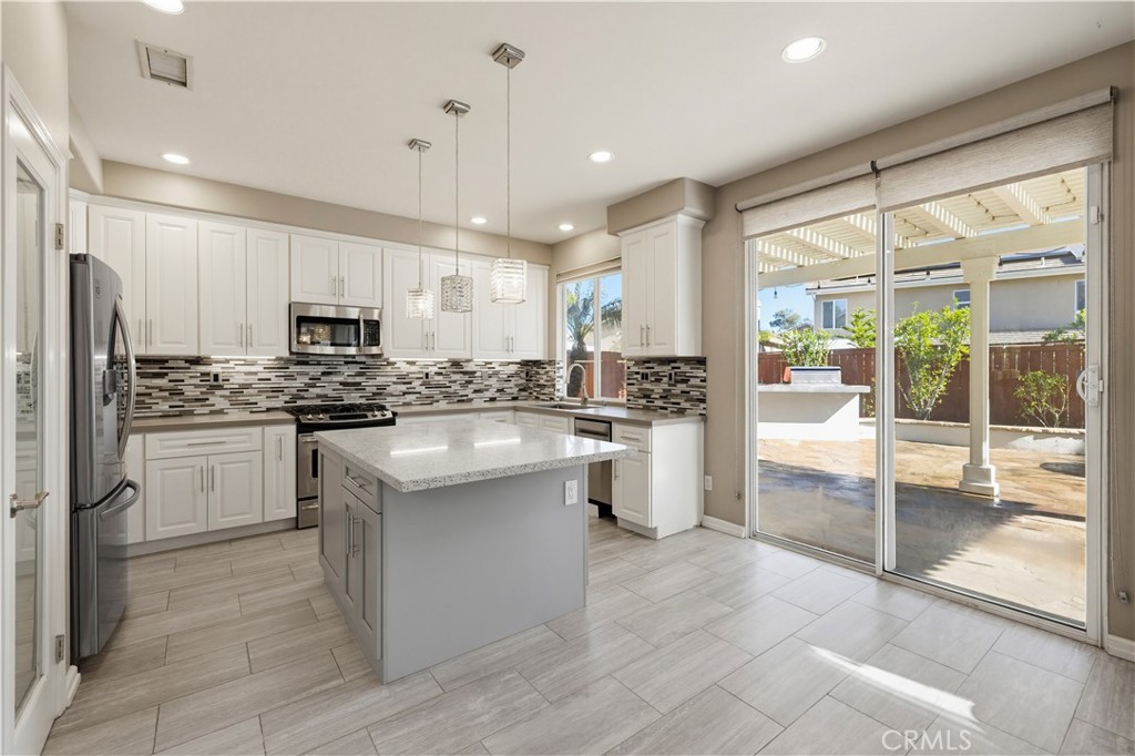 Stunning home nestled in the hills of Santa Clarita . As you enter, you’ll find vaulted ceilings with high windows that fill the home with warm natural light. The main level features gorgeous wood flooring in the entry, formal living room, dining room, and family room. The formal dining room sparkles with a beautiful chandelier and opens to the family room, complete with a new fireplace and mantel—perfect for cozy evenings. The exquisitely remodeled kitchen with center island features a glass tile backsplash, Corian countertops, stainless steel appliances, and crisp white cabinetry that keeps everything looking fresh and bright. Upstairs, the spacious primary bedroom leads to a beautifully remodeled primary bath featuring custom tile, elegant fixtures, and a stunning freestanding tub—perfect for relaxing after a long day. A large open loft with wood flooring provides a wonderful extra living space or could easily serve as a 4th bedroom. Both secondary bedrooms are generously sized. The hall bathroom has been tastefully remodeled with a large step-in glass shower and custom tile. Step outside to your private backyard oasis, complete with built-in planters filled with fruit trees, a covered patio, fire pit, built-in barbecue with refrigerator, and low-maintenance artificial turf—ideal for entertaining or simply enjoying the California sunshine. The 3rd car area in tandem garage is currently set up as a work room studio. The neighborhood also features a small pocket park nearby for children and pets to play. And for commuters, the property is conveniently located less than 3 miles from the 14 Freeway.