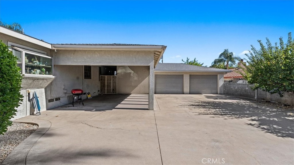 This property features a main home and a back house, offering plenty of space and flexibility. The back house includes an open room with a bathroom and shower, perfect for guests, a studio, or a private workspace. Inside the main home, you’ll find a living room with a fireplace, a dining room, and a kitchen with an eating area, and plenty of cabinet and counter space. A den with a fireplace and built-in shelves provides a cozy place to unwind. The living room opens through French doors to a spacious game room with a bar and sink, built-in entertainment center, ceiling fan, and French doors leading to the backyard. The primary suite includes its own private bathroom, and another bathroom with a shower is conveniently located near the front bedroom. The laundry area is located in the detached garage. Another bonus is that the Solar panels are paid off. Outside, you’ll find a pool with a spa, a covered patio, and a basketball court perfect for gatherings and outdoor fun. The circular driveway provides plenty of parking and easy access, all set on an expansive 20,400 sqft lot. This home offers room to relax, entertain, and make lasting memories.