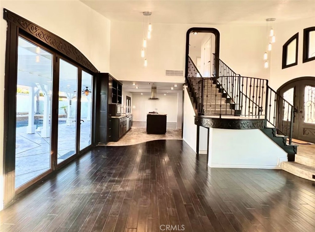 MOVE-IN READY!! No HOA, No Mello-Roos !! This stunning North Valencia pool home, with access to award winning school, was completely remodeled from inside and outside. Large covered entry walkway leads you to an elegant double metal front door. Behind the door is a stylish designed iron staircase. Large French glass door in living room showcases resort like pool and spa area in the backyard perfect for family fun, pool was updated with color changing lights and water sprouts. Open floor plan on first level makes the space bright and airy. Kitchen opens up to formal dining room and living room. Stainless steel appliances, double oven, large center island with beautiful granite countertops, you will enjoy having a walk-in pantry, pull out drawers / shelves and built in spice storage in kitchen. All bedrooms are upstairs. Master bedroom boasted with walk-in closet with organizer, gracefully designed master bath has double vanities, upgraded fixtures and a walk-in shower. Guest bathroom was tastefully updated with granite countertop and tub / shower. This hidden gem is surrounded by palm trees in a quiet neighborhood. Trader Joe’s, Best Buy, supermarkets and varieties of restaurants are conveniently located minutes away.