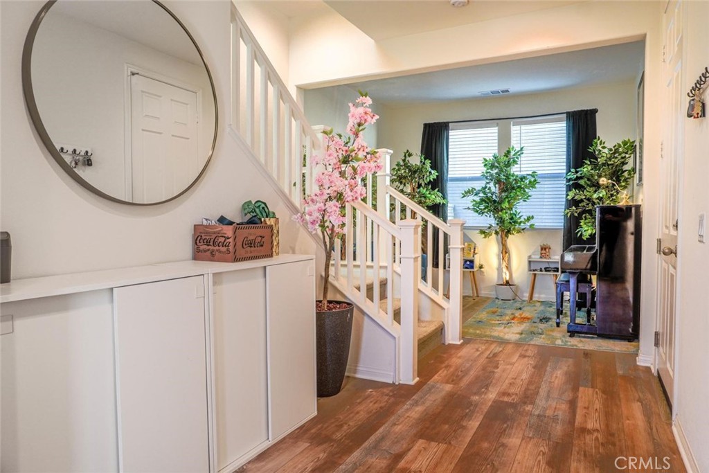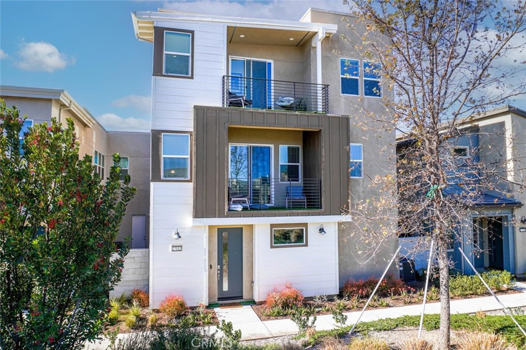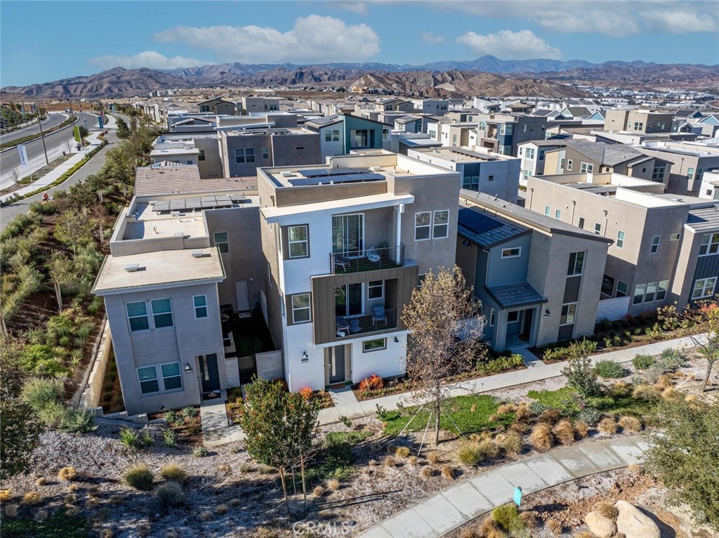 Experience the perfect blend of luxury and comfort in this nearly new 3 bedroom tri level home in the desirable Redmond Nevett Plan of the Richmond American Homes. The first floor offers you access to the attached 2-car garage and the study (could easily be used as a formal living or a home gym!). As you head upstairs you will have the great room and kitchen along with one bedroom and full bathroom. The gourmet kitchen offers a trendy vibe with rich green cabinets, quartz counter tops with an oversized island and stainless steel appliances. Upgraded laminate plank floors as well as carpet in the bedrooms and stairs. The covered deck off the great room offers gorgeous mountain views. The top level is where you will find the primary suite with a walk-in closet and full private bathroom with dual vanities and a walk-in shower. The additional bedroom with its own full private en-suite bathroom and walk-in closet is also located on the third floor. Not to mention another covered deck with equally tremendous mountain views! The 5 Point Community is one of the newest Valencia communities and has amenities never before seen including exceptional smart home technology, solar and charging stations throughout the development. The gorgeous Confluence Park offers 3 pools, cabanas, playgrounds and of course the Community Garden. Paseo walkways connect you from one neighborhood to the next and the schools are some of the highest rated in Southern California. Come see this great neighborhood and this practically new home!