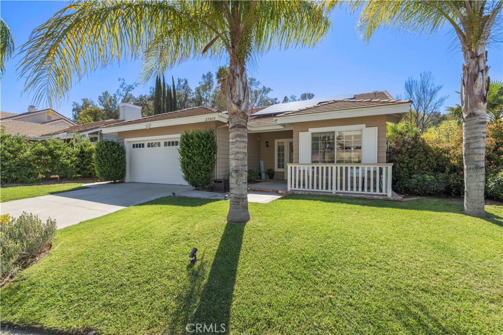 SINGLE-story POOL home, corner lot, featuring a beautifully remodeled kitchen and a backyard designed for entertaining! Welcome to this beautiful home in the highly desirable Northbridge community of Valencia. The inviting entry opens to a spacious living room highlighted by updated luxury vinyl plank flooring and a custom fireplace, creating a warm and stylish gathering space. The home flows seamlessly into the stunningly remodeled kitchen, featuring custom cabinetry, quartz countertops, and modern finishes, perfect for both everyday living and entertaining. The spacious primary suite offers a relaxing retreat with its own en-suite bathroom, while two additional bedrooms, a full hallway bath, and a private office space provide versatility for work or family needs. A whole-house humidifier system adds year-round comfort. Step outside to your private entertainer’s backyard, complete with a sparkling pool, covered patio ideal for outdoor dining, and low-maintenance turfed back and side yards. Additional highlights include a 2-car attached garage with epoxy flooring, ductless mini-split climate control, and an EV charger, offering both convenience and functionality.