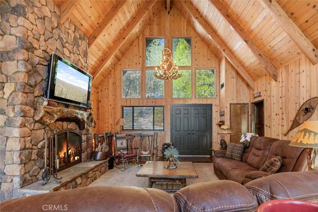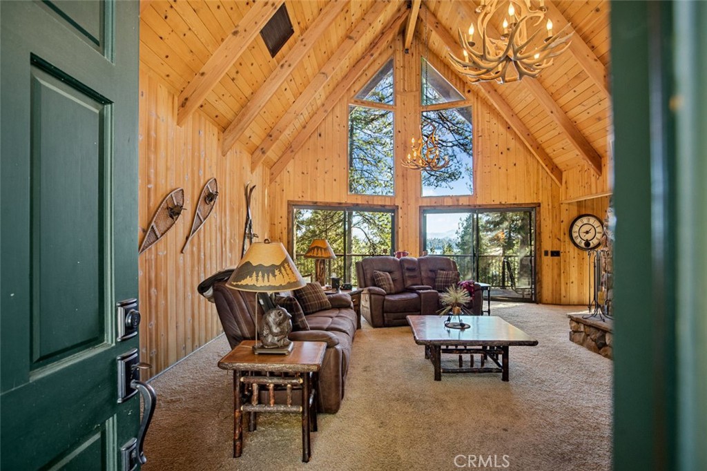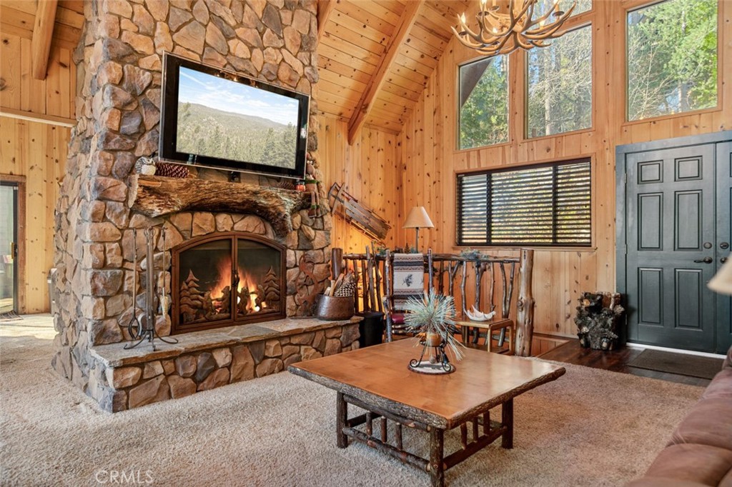 Welcome to this stunning mountain retreat, ideally located just minutes away from Blue Jay on a county maintained access road. This home combines the best of nature’s beauty with thoughtful updates and luxurious amenities, offering a serene lakeside lifestyle just waiting for you to enjoy. Step inside this level entry home and you will find soaring high ceilings that elevate the spacious, open floor plan, complemented by stunning tongue and groove wood paneling that brings the warmth and charm of the mountains right into your living space. Cozy up by one of the three inviting fireplaces scattered throughout the home, or unwind in the large family room featuring a wet bar, perfect for entertaining friends and family. The recently updated kitchen features granite counter tops and stainless steel appliances. Both of the expansive decks have been recently rebuilt with trex type decking and a jacuzzi offering the perfect space to entertain or relax while taking in the gorgeous lake views while being surrounded by nature. The main floor primary suite provides easy access to the main living areas while offering privacy and a peaceful retreat. With air conditioning throughout, you’ll stay cool no matter the season, and the level entry ensures effortless access to your mountain home.This property offers a unique opportunity to live in a tranquil and sought-after area while enjoying modern conveniences and timeless mountain charm. Schedule your showing today and experience all the amenities this exceptional home has to offer.