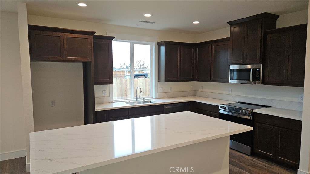 This home is complete! Epick Homes is offering an extremely generous incentive of up to $10,000 as a seller credit plus an additional preferred lender credit of .5% of the loan amount can be available to cover closing costs and/or interest rate buydown on this home. The home offers a well designed layout with 4 bedrooms and 2 bathrooms, showcasing an open concept living space that combines style and functionality. Standard features include stunning quartz countertops, beautifully stained custom cabinets, laminate flooring throughout the main living areas, and elegant 12×24 tile in the bathroom floors and shower walls. The bedrooms are finished with plush, stain-resistant carpet and ceiling fans are installed in both the living room and each bedroom. Enjoy front yard landscaping, a charming covered back patio, and a spacious backyard, perfect for relaxing or entertaining guests.