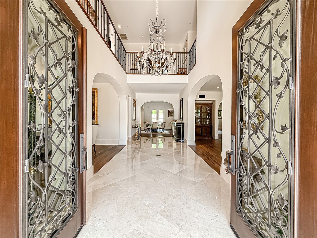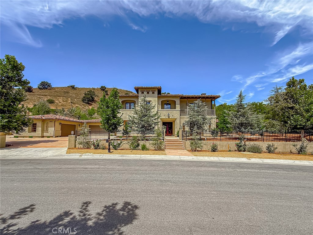 Stunning Mediterranean estate in a small gated, quiet community. Built in 2019, this remarkable home sits on 3.6 acres of opulent beauty and privacy, surrounded by tranquil hillside vistas. The main residence is a two-story masterpiece offering four bedrooms and five bathrooms, plus a dedicated home office. Every bedroom includes its own en-suite bathroom, and the property showcases exceptional craftsmanship with top-of-the-line finishes throughout. The gourmet chef’s open kitchen features high ceilings and premium appliances, creating an ideal space for entertaining and daily living. This estate also includes a separate Casita with one bedroom and one bathroom, and a private guest house composed of two bedrooms, two bathrooms, a full kitchen, and a sauna. (Included in bed/bath count and total square footage.) For car enthusiasts, there is a five-car garage with ample additional parking. The outdoor living is equally impressive, with an expansive backyard designed for entertaining, a large pool, a spa/jacuzzi, and a sports court. The serene hillside surroundings provide a tranquil and private retreat. This property features impeccable materials and finishes throughout and represents a rare opportunity to own a luxury Mediterranean estate in a sought-after gated community. Don’t miss the chance to explore this exceptional residence.