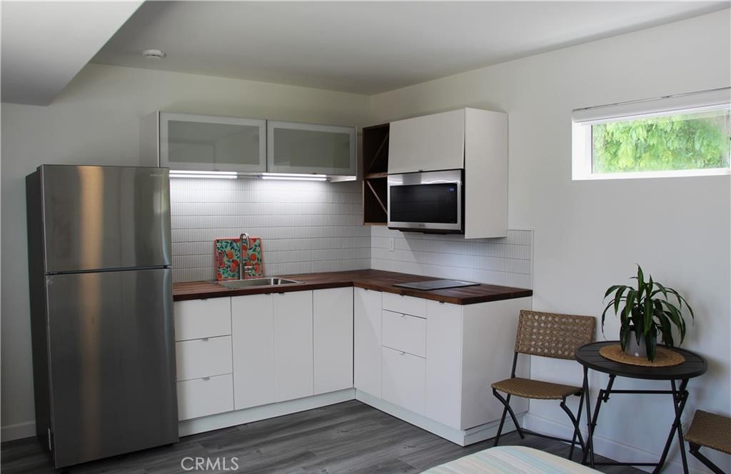 Welcome Home to this beautiful studio casita. It is a separate space that is attached to the main house, with a private entrance and accommodations. This casita has been fully updated with a stainless steel refrigerator, updated countertops and cabinets, a 3 in 1 new convection appliance which functions as an air fryer, microwave oven, and 2 burner induction stove top. The casita has new flooring throughout and comes furnished with a full-size bed with a tuft & needle mattress, dresser, wardrobe, and small dining room table and chairs. The bathroom has a large stand-up shower and updated finishes. Water, trash, electricity, gas, and Wi-Fi are all included in the rent payment! The entrance to this pretty space is via the front courtyard and over a beautiful pond water feature. Future tenant (s) have access to and are free to enjoy the residents sparkling private pool. You don’t want to miss out on this little retreat!