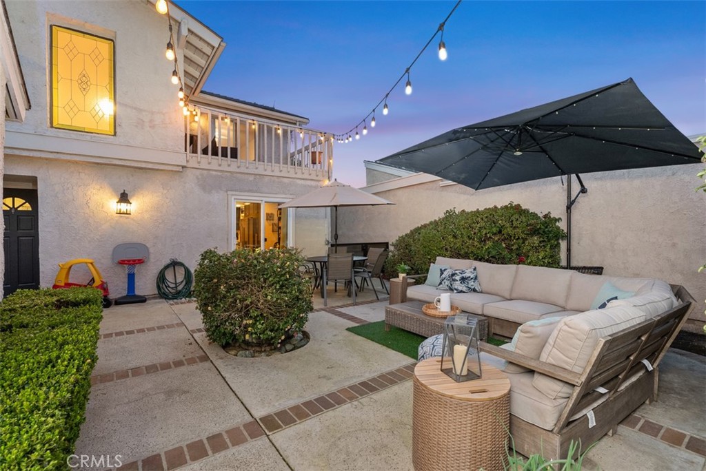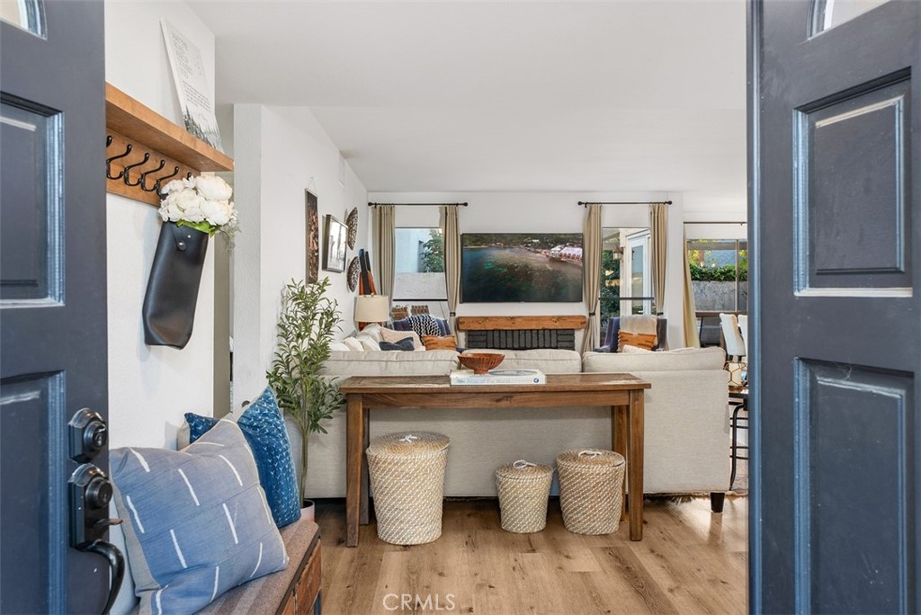 Gorgeous Lake Park home with a main floor primary bedroom and totally reconfigured kitchen! Private, gated front courtyard entrance with large open area with the garage adjacent. This home features an incredible kitchen that was done in 2020 that entailed removing walls and a dropped ceiling and now has a large island that was not part of the original floor plan and now is totally open to the dining room and main living and family rooms. The kitchen boasts custom shaker wood cabinets with soft-close drawers, a farmhouse sink, a walk in pantry, leathered quartzite countertops, and new appliances (oven replaced in 2023). Luxury vinyl flooring and new baseboards enhance the first floor, while new light fixtures add a modern touch throughout. The main floor includes a spacious primary suite with a stunning primary bathroom that has been remodeled from top to bottom with new cabinets, countertops, sinks, mirrors, shower, and has a walk in closet and access to the backyard. An additional bedroom, bathroom and laundry plus the furnace was relocated, creating extra inside storage downstairs. Upstairs there are two more bedrooms plus a brand new remodeled bathroom with walk in shower, new vanity with dual sinks, lighted mirror, and all new fixtures and finishes (2025). Off the front bedroom is a balcony overlooking the front courtyard. Additional updates include new carpet up the stairs and into the rooms upstairs (2025) new paint, a new hot water heater (2023), dual-zone AC unit (2024), and new windows in the primary bedroom and a secondary room upstairs. Two car garage that has great storage capabilities overhead. Lake Park HOA includes a community park, pool & jacuzzi. Walking distance to Laguna Niguel Regional Park, which has hiking trails, picnic areas, sports courts, fishing at the lake, and areas to rent out for parities plus a 4th of July fireworks show. Costco, Whole Foods, Sprouts, Home Depot, the newly renovated YMCA, numerous restaurants and only a few miles to world class beaches, 5-star resorts, Laguna Beach, & Dana Point Harbor currently undergoing a major renovation.