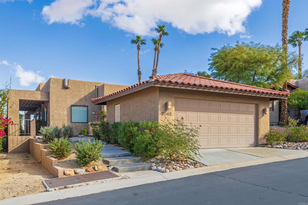 Motivated seller! Rare opportunity to own this well designed and appointed two-bedroom, two-bath desert home with fabulous mountain and golf course views. Floor plan offers maximum privacy with primary bedroom in one wing, guest quarters in another, all on one level. Stunning view takes in the 14th fairway and winning, aesthetically-acclaimed Tom Fazio golf course, backed by sweeping natural desert and mountain panorama. The orientation of the home assures a spectacular sky at sunrise and sunset. A lovely approach with water features, ponds and detached 2 car garage. A short five-minute walk to HOA lap pool, swimming pool, spa, tennis court and pickleball! An easy-care landscaped yard. Walking distance to Rams Hill Clubhouse. Adjacent to the 600,000 acres of Anza Borrego State Park. A true gem within Borrego Springs, the only certified Dark Sky Community in California. Located just 6 miles from Borrego Springs, this home is conveniently close to shopping, grocery stores, restaurants, and other essential services. Whether you’re seeking stargazing, golf, hiking, cycling, art appreciation, or simply to relax, this home is the perfect desert retreat!