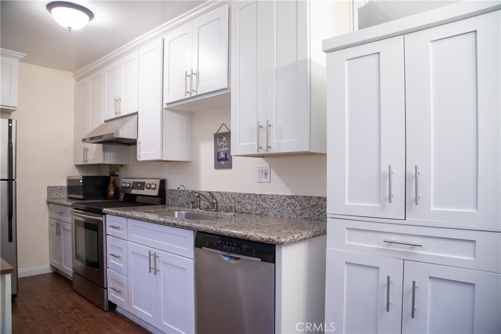 Top-floor, extensively updated 2BR/2BA condo in a prime West Los Angeles location featuring tasteful, modern finishes throughout, and includes an in-unit washer and dryer. Distressed Hickory Ebony laminate flooring runs through the living and dining areas, with wood grain textured luxury vinyl in the kitchen and bathrooms. The kitchen offers granite countertops and wood cabinetry. The living room features recessed lighting and opens to a spacious balcony. The primary suite includes a walk-in closet and an en-suite bathroom with granite vanity and tub/shower. Located near the vibrant Sawtelle Japantown district, the property offers walkable access to diverse dining options, cafes, grocery stores, and retail including Starbucks, Vons, and Mitsuwa Marketplace. Close proximity to the 405 freeway provides a quick connection to Santa Monica, UCLA, and the Westside’s tech and entertainment hubs.