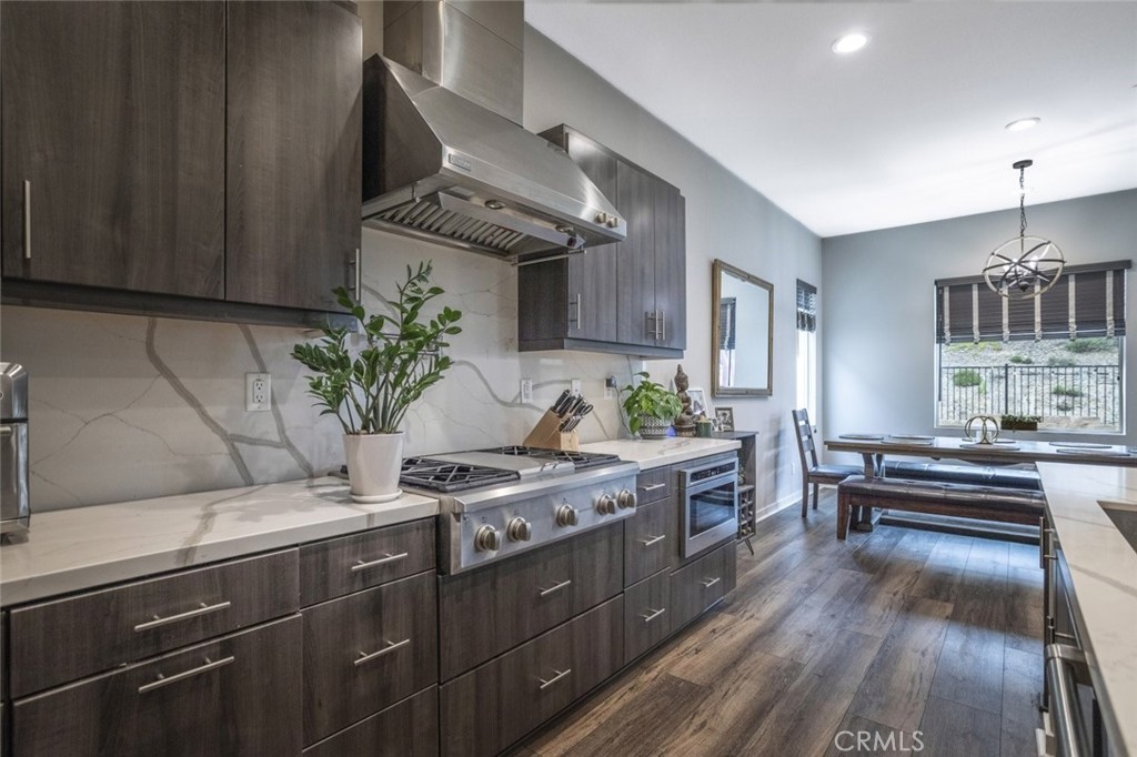 Beautifully maintained two story home located in a desirable Santa Clarita neighborhood, offering approximately 2,932 square feet of well designed living space on a 6,223 square foot lot. This spacious residence features 4 bedrooms and 3 bathrooms, including two primary bedrooms, providing flexibility for multigenerational living, guests, or extended household needs. The interior showcases an open and inviting floor plan filled with natural light, wide plank flooring, and a seamless flow between the living, dining, and kitchen areas. The kitchen features modern cabinetry, generous counter space, a large center island with seating, and stainless steel appliances, making it ideal for everyday living and entertaining. Dining and living areas open toward the backyard, creating a comfortable indoor outdoor connection. Both primary bedrooms are generously sized and include private en suite bathrooms with dual vanities and walk in shower enclosures. Secondary bedrooms offer versatile use for guest rooms, home office, or additional living needs. Bathrooms throughout the home reflect contemporary finishes and a clean, modern aesthetic. The backyard provides a private outdoor setting with a covered patio, landscaped lawn, and space for outdoor dining or relaxation. A two car attached garage offers convenient parking and additional storage. Residents enjoy access to all Skyline community amenities, including a guest house, pool house, resort style pool, clubhouse, tennis court, and scenic hiking trails. Conveniently located near parks, schools, shopping, dining, and major access routes, this home offers a balance of comfort, functionality, and community lifestyle.