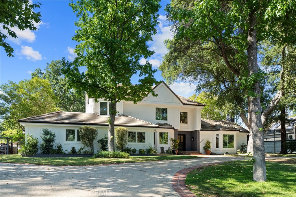 Stunning tennis court estate located at the base of the scenic Santa Monica Mountains, within the prestigious Countryside Estates community, adjacent to Paramount Ranch. Set on approximately one acre of lush, landscaped grounds, this home offers the ultimate in privacy, comfort, and resort-style living. Step into your own private backyard oasis—perfect for entertaining or unwinding in paradise. Enjoy a full-size lighted tennis court, putting green, and a sparkling swimming pool with a waterfall and spa. Mature landscaping includes oak trees, redwoods, and 30+ rose trees. Inside, the home boasts 5 spacious bedrooms, including a junior suite on the main level with its own sitting area and ensuite bath—ideal for guests or multigenerational living. Upstairs, the primary suite features two walk-in closets, a private patio, and a cozy gas fireplace. Two additional fireplaces warm the formal living room and family room, adding ambiance throughout. The upgraded kitchen is a chef’s dream with stainless steel appliances, a Thermador cooktop, and double oven. Recent improvements include new windows with 50/50 wide-plank plantation shutters, flooring, hand-made glass chandeliers, and whole home filtered water system, blending modern updates with timeless elegance. Situated on a peaceful cul-de-sac, the semi-circular driveway offers ample guest parking and plenty of space for RV parking. The third-car garage has been transformed into a fully equipped fitness/yoga studio. This exceptional property combines luxurious amenities, privacy, and an unbeatable location—truly a rare offering in one of the most desirable neighborhoods.