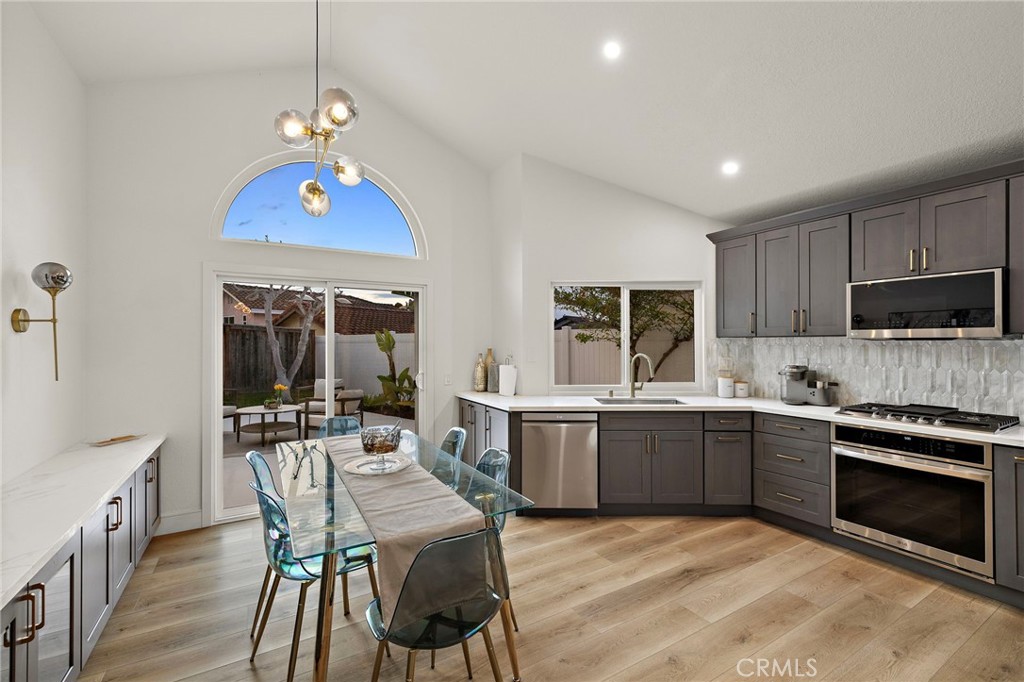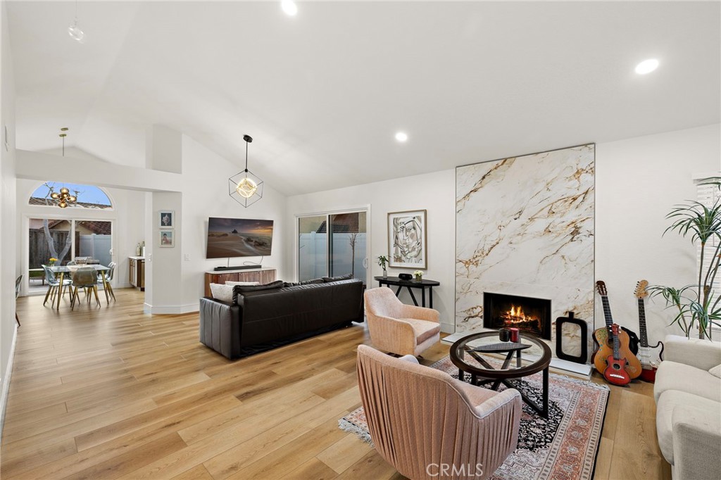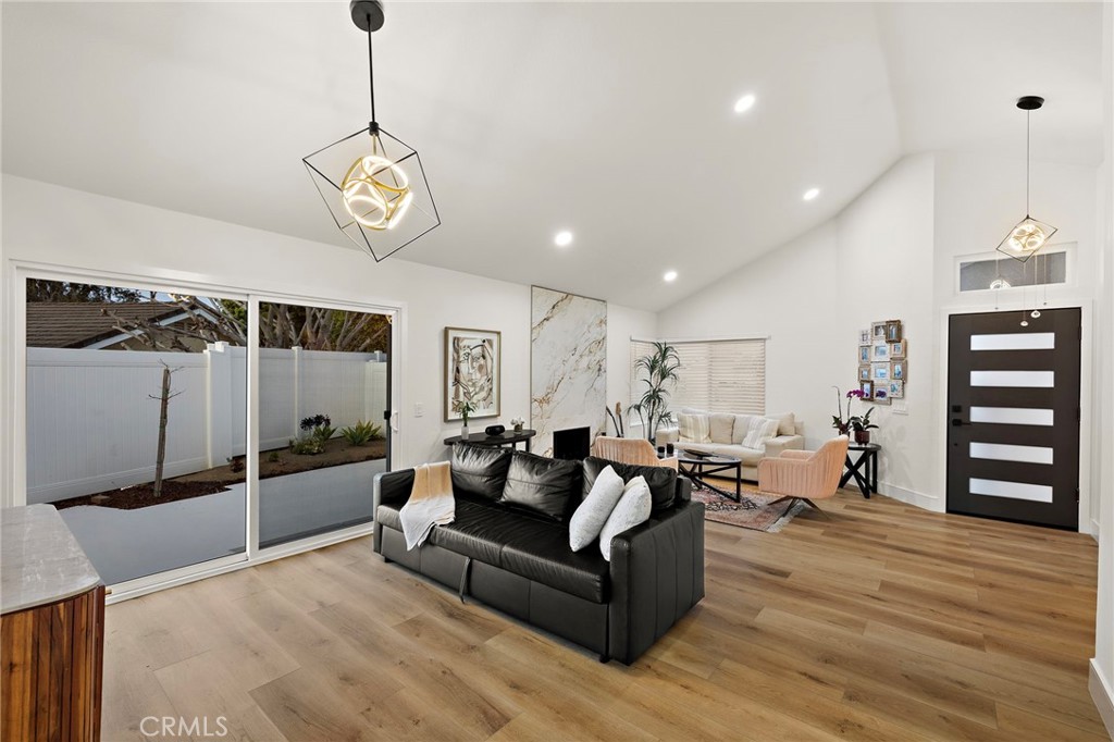 Beautifully upgraded single-story home in the desirable Mariners Bluff neighborhood of Laguna Niguel. This 2-bedroom, 2-bath residence features an open floor plan with vaulted ceilings, abundant natural light, and a cozy gas/wood-burning fireplace. Recent improvements include opening up the living room for enhanced flow, added storage in the kitchen and dining area, and expanded closet space in the primary bedroom. The updated kitchen offers soft-close cabinetry, stainless steel appliances, Dekton countertops, a farmhouse sink, and a large peninsula with seating and storage. The primary suite includes an ensuite bath with dual sinks and a spacious walk-in shower. Additional upgrades include reclaimed wood flooring, new doors and windows, ceiling fans, a Dutch front door, epoxy-finished garage floor, new water heater, and newer HVAC and plumbing. Enjoy a private, landscaped backyard with a beautiful patio. Conveniently located near hiking trails, beaches, Dana Point Harbor, shopping, dining, and major freeways.