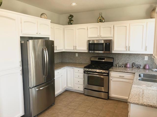 Beautiful two-story home with cathedral ceilings and lots of natural light. Updated kitchen has granite counter tops, stainless steal appliances, gas range, garden window and tile floors. Living room and dining area have dramatic high ceilings and multiple windows. Separate family room has a gas fireplace and sliding glass doors that open to a beautiful private back yard with auto sprinklers. Spacious master bedroom has vaulted ceilings, mirrored closet doors and a master bathroom with double sinks, sunken tub and a separate shower stall. New carpets upstairs, fresh paint, double pane windows and plantation shutters throughout. 2-car attached garage. Washer, dryer and refrigerator included. Bi-monthly gardening service is included with rent. Located in the most desirable neighborhood of CA Landing. Award winning schools: Marshall Pomeroy E.S., Thomas Russel Middle School and Milpitas High (tenants to verify). Close to parks, shopping & freeways.