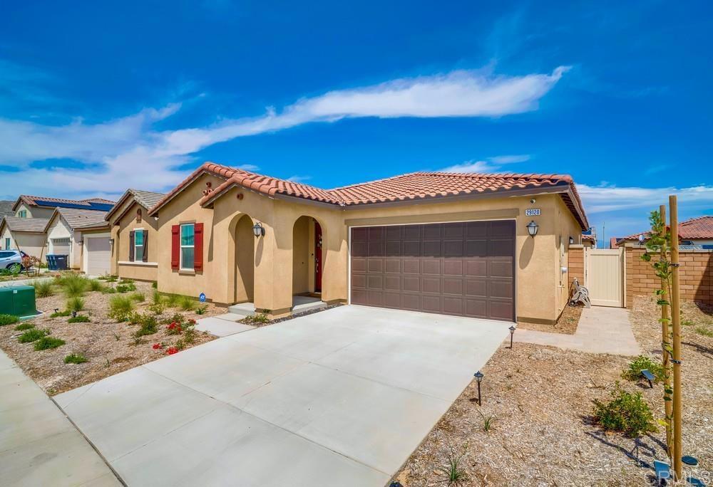Beautiful Single-Story, Highly Updated, and Modern home that is less than a year old. Open floor plan & 10ft ceilings gives it a much larger feel. Stunning Kitchen: Quartz countertops, Large barstool Island, Stainless Steel appliances! Luxury Vinyl flooring. Lots of Natural Light. Professionally landscaped(none of the new builds come with this $37k upgrade) low maintenance backyard with a Mountain View everyone loves. Fenced backyard Perfect for Pets to Play. 3 bedrooms with an option to turn the spacious Den into a 4th Bedroom. 2 Full Baths. Quiet Neighborhood. Has Solar! No HOA payment! Close to Winchester/Promenade Mall/Shopping in Menifee, 20 minute drive to Temecula, 1 hour drive to Disneyland. Hiking trails and parks less than 5 minutes away.