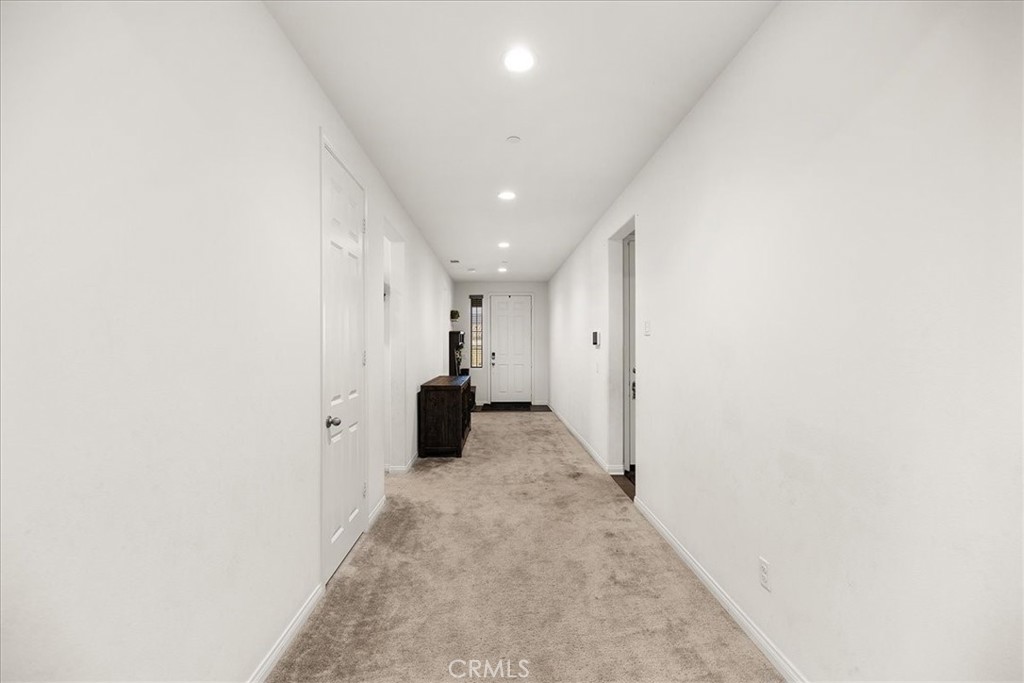 Welcome to this stunning Single-Story residence offering 2,514 sq. ft. of thoughtfully designed living space with 4 Bedrooms, 3 Bathrooms, perfectly blending functionality and luxury. With no neighbors behind and stunning views of the local mountains, this home has a peaceful feeling. Three of the Bedrooms are located in the front of the home, two of which are connected by a Jack and Jill bathroom, and one with its own hallway bathroom providing comfort for family or guests. The Primary Bedroom Suite is tucked away at the back of the home offering added privacy. The Primary suite feels like a peaceful retreat with a custom barn door leading into a spa-like bathroom featuring dual sinks, a walk-in shower, an oversized soaking tub, separate toilet room, and a spacious walk-in closet with custom shoe shelving. The heart of the home is the Gourmet Kitchen boasting white cabinetry, Carrera marble countertops, an extended center island/countertop, stainless steel appliances, a 36-inch commercial range top, and a professional-grade stainless steel sink. It is OPEN to the Family Room and Dining Area and promotes family gatherings and entertaining. There is a Good size walk-in Pantry for food storage. Practical upgrades include a three-car Tandem Garage equipped with a tankless water heater, 240V EV charging station and two 1,500-lb overhead storage racks. The laundry room is indoors, and comes with built-in shelving. PAID OFF SOLAR through SunRun and NO HOA are MAJOR added benefits! The Whole house fan helps cool off the home quickly and efficiently during the warmer months. There is ample room for all your “toys” as this property features an extended driveway with vehicle-rated pavers designed for vehicle or boat parking at the Front Left side of the home. Enjoy California outdoor living with an extended concrete patio, alumawood patio cover, and ceiling fans with lights. Use your imagination to design the rest of the Back yard to your own desires. This home checks every box with its combination of modern elegance, thoughtful upgrades, Paid Off Solar and No HOA.
