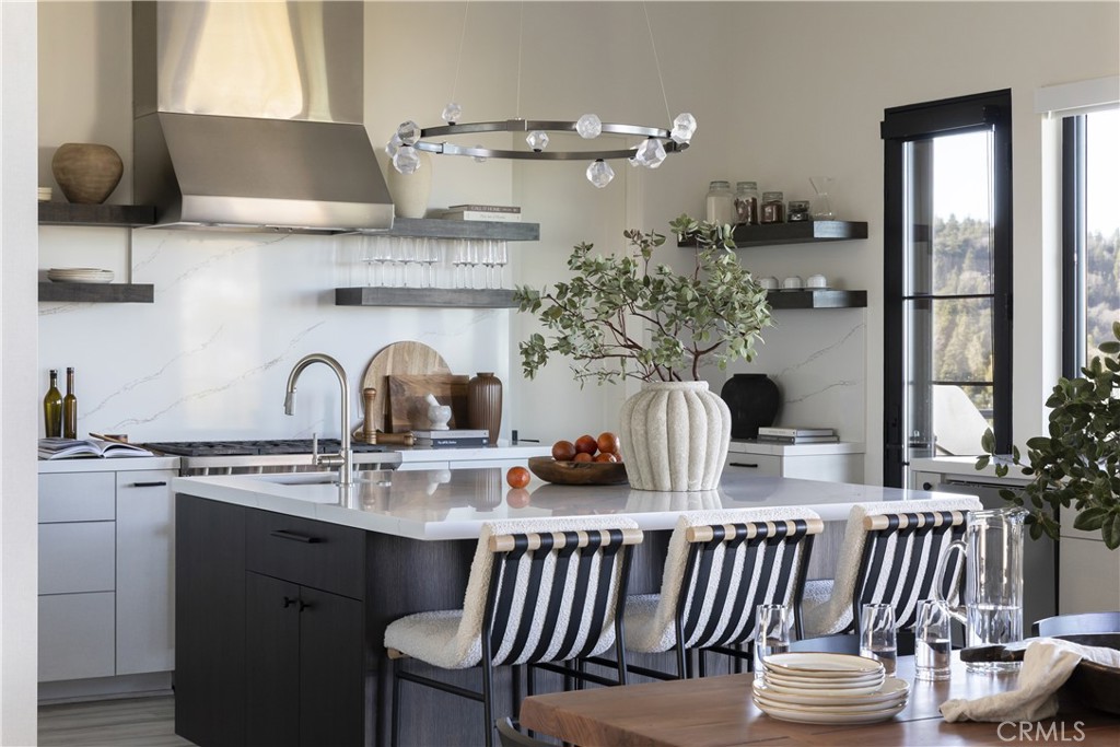 Welcome to your Aspen inspired mountain contemporary residence in Mill Pond, a prestigious gated community in Lake Arrowhead. Imagine waking up each day in this recently built residence, perched at the top of a quiet, private cul-de-sac offering privacy, level entry, and a rare two car garage. Offering panoramic 360 degree views, this one of a kind setting captures sweeping lake vistas, snow capped mountains, mature trees, and dramatic ridgelines rarely found in Lake Arrowhead. The architecture blends refined mountain modern design with natural materials including stone, wood, stucco, and Hardie board siding, creating a timeless yet contemporary presence. The property includes a detached casita ADU with its own kitchenette, bedroom, and bathroom. The ADU has an active short term rental permit and has been a successful income producing rental, ideal for guests or additional income. The main level is designed as an open concept entertainment space connecting the kitchen, dining, and living areas. Expansive sliding glass doors open to large decks with panoramic lake views, creating effortless indoor outdoor living. A sleek fireplace anchors the living room. A two person elevator provides easy access between levels or can function as a dumbwaiter. The upper level features the primary suite with fireplace, private deck, spa inspired bath with soaking tub and view window, plus laundry and office space. The lower level offers a second living area with fireplace, a third expansive deck, two ensuite bedrooms, and a spacious game room. Mill Pond offers a refined mountain lifestyle within a secure gated setting, close to hiking, dining, village amenities, and lake rights. This home delivers modern mountain architecture, panoramic views, and built in income potential in one of Lake Arrowhead’s most desirable communities.