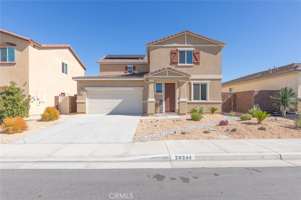Welcome to 29244 Date Palm , a stylish and inviting home in the highly-desired Summerly community of Lake Elsinore! This beautifully upgraded 4-bed, 3-bath residence offers 2,314 sq ft of comfortable living, featuring a convenient downstairs bedroom perfect for guests, in-laws, or a home office. Step inside to find an open and airy floorplan highlighted by upgraded vinyl wood flooring, modern kitchen cabinetry, granite countertops, and stainless steel appliances, a kitchen designed for both daily living and entertaining. The backyard is where this home truly shines! Enjoy a fully customized outdoor space complete with pavers, turf for low-maintenance living, and your very own tranquil waterfall feature—ideal for gatherings, BBQs, or relaxing evenings at home. The front yard offers easy-care desert landscaping, keeping upkeep simple and curb appeal high. Energy efficiency is a plus with leased solar, helping keep utility costs down year-round. Located in Summerly, residents enjoy access to community pools, parks, sports court, and more—just minutes from schools, shopping, dining, and the lake. Turn-key, upgraded, and ready to welcome you home