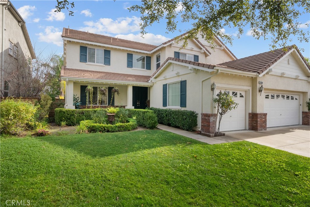 Welcome to this beautifully updated Huntington Collection home located in the highly sought-after Tesoro del Valle community. From the moment you arrive, you’ll be captivated by the attractive curb appeal, lush landscaping, inviting front porch with sitting area, and grand double-door entry. Step inside to nearly 3,500 sq. ft. of thoughtfully designed living space, offering 5 bedrooms (including one conveniently located downstairs), 3 bathrooms, formal living and dining rooms, a spacious great room, laundry room, and a 3-car garage. Cathedral ceilings in the entry create an impressive first impression, while abundant windows flood the home with natural light. The heart of the home is the beautifully updated kitchen, featuring premium Thermador appliances, including a Wi-Fi-enabled oven, a microwave-convection oven combination, and sleek finishes throughout. This expansive kitchen offers generous cabinetry, ample counter space, a large island, coffee bar, and a massive walk-in pantry—perfect for both everyday living and entertaining. All bathrooms have been tastefully upgraded, offering a fresh, modern feel with designer finishes. The spacious primary suite is a true retreat, showcasing double-door entry, a private sitting area, romantic balcony with city-light views, and a large walk-in closet. The spa-inspired ensuite bath features dual sinks, a soaking tub, separate shower, and abundant linen storage. Secondary bedrooms are generously sized with ample closet space, while the downstairs bedroom and adjacent bath are ideal for guests or multi-generational living. Step outside to a private entertainer’s backyard complete with a large, covered patio, beautiful landscaping, and multiple spaces for outdoor dining and relaxation. Enjoy the lifestyle Tesoro del Valle is known for—close to parks, award-winning schools, shopping, and convenient freeway access. This move-in-ready home seamlessly blends timeless elegance with modern upgrades and is truly one you won’t want to miss.