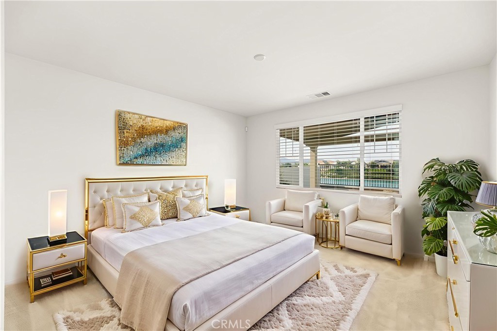 Welcome to lakeside living at its finest! This stunning single-story home in the gated community of The Lakes in Menifee offers 3 bedrooms, 2.5 bathrooms, and 1,937 sq. ft. of thoughtfully designed space. From the moment you enter, your eyes are drawn to the expansive rear windows framing with unobstructed, breathtaking views of the lake; a rare and captivating backdrop from both the great room and the primary suite. The open-concept layout features high ceilings, recessed lighting, and a gourmet kitchen with granite countertops, stainless steel appliances, walk-in pantry, and center island. The primary suite includes a spa-inspired bathroom with dual sinks, soaking tub, separate shower, and walk-in closet—all with those incredible lake views. Step outside to your private oasis with a covered Alumawood patio, recessed lighting, ceiling fans, artificial turf, stamped concrete, and a built-in gas fire pit overlooking the water. The backyard also includes a 220V hookup, perfect for a spa. Additional highlights: leased solar, tankless water heater, oversized two-car garage with storage/workshop space, extra-wide driveway, handicap-accessible entry, and a full security system. The Lakes community offers resort-style amenities—clubhouse, pools, waterslides, fitness center, walking trails, and more—all just minutes from shopping, dining, schools, and the 215 freeway. Don’t miss this rare opportunity to own a **true lakefront home with unmatched views** in one of Menifee’s most sought-after communities!