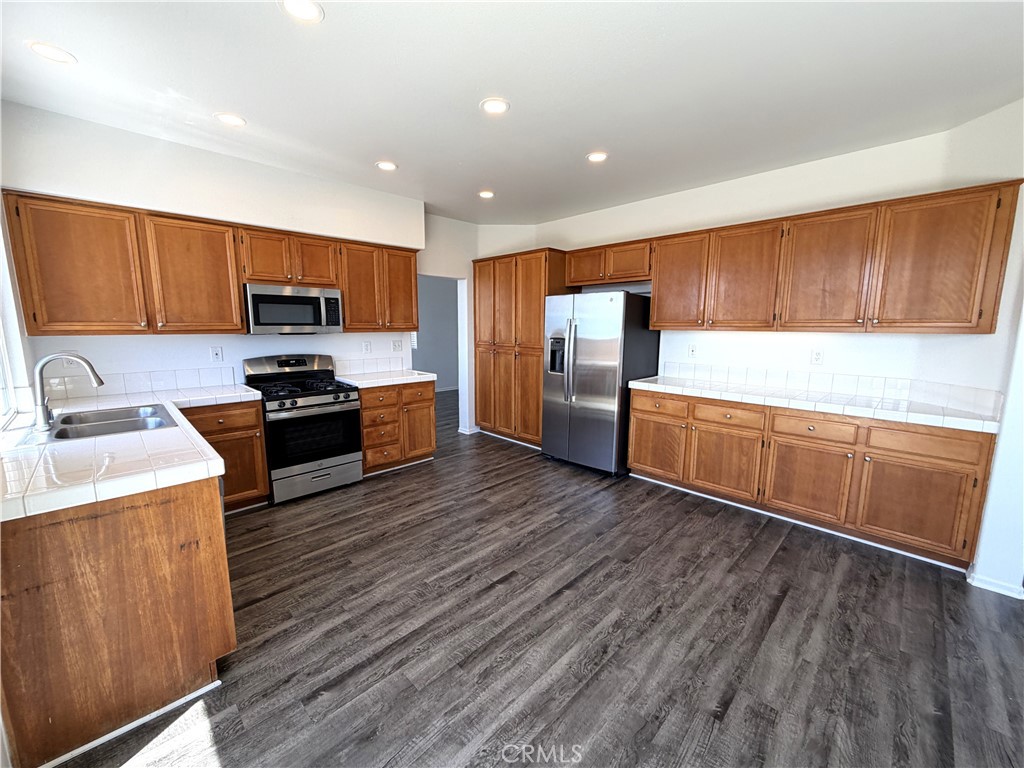 Welcome to this spacious 5-bedroom, 3-bathroom two-story home in Menifee! Recently updated with fresh interior paint, this home offers a functional and inviting layout. Enjoy a bright living and dining room combo, along with a cozy family room featuring a fireplace that opens to the kitchen. The kitchen is equipped with newer-style cabinets, countertops, and appliances. The main level includes a bedroom, laundry room, and a convenient half bathroom. Upstairs, you’ll find the remaining bedrooms and bathrooms, including a generous primary suite with a walk-in closet and an attached bathroom with dual sinks, a soaking tub, and a separate shower. The backyard features a patio area with plenty of space to entertain or relax. Complete with an attached three-car garage and driveway, this home offers comfort, space, and versatility.