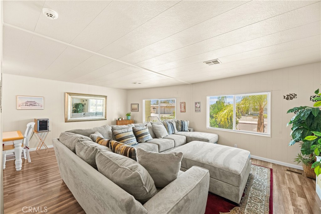 Beautiful corner lot home in a senior golf community with low HOA and county taxes! This home is a 3 bed, 2 bath with an office space! This home is on permanent foundation with a 433C. The layout includes a private third bedroom with a kitchenette behind the garage—perfect for a caregiver, guest, or multigenerational living. Beautiful updated kitchen with plenty of space that features a pot-filler above the stove for added convenience. Brand new roof, new flooring & paint. Enclosed porch opens with sliding doors to the family room & office space, offering extra living space and natural light. Master bedroom includes added closet space. Large, private patio overlooks a lush garden with a variety of fruit trees—ideal for relaxing or entertaining. A rare and flexible floor plan in a peaceful, amenity-filled community!