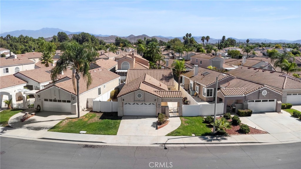 Exceptional pride of ownership is evident in this charming 2-bedroom, 2-bathroom home with a 2-car garage, perfectly nestled in the highly sought-after Andalusia neighborhood of the Menifee Lakes Master Community, and located right in the heart of the Menifee Lakes Golf Course. This is not a 55+ community. This cozy and bright home features vaulted ceilings, skylights, and a clean, low-maintenance mix of vinyl and tile flooring throughout. The modern kitchen boasts nice white cabinetry and stainless steel appliances. Ceiling fans enhance comfort and convenience throughout, and mirrored closet doors add a touch of elegance. The smart floor plan ensures privacy, with the 2nd bedroom connecting directly to a full bathroom. Step outside through one of the two sliders to your private patio, featuring elegant Spanish tile, a durable vinyl fence, and a beautiful alumiwood patio cover with sun shades—ideal for outdoor relaxing or entertaining. Residents enjoy a resort-style lifestyle with access to the Master Community amenities, including multiple pools, scenic walking trails, the exclusive Lake House for fishing, and various parks. The unbeatable location also provides quick and easy access to local freeways, shopping centers, and a variety of restaurants. This is a must-see home offering community amenities and central convenience! Schedule your showing today.