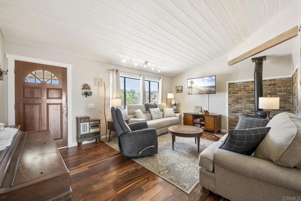 Welcome to this beautifully updated Valley Center retreat nestled on 2.32 usable acres with owned solar + Tesla battery backup and a detached office/guest room. Step inside to find lovely wood laminate floors flowing throughout the home and your living room anchored by a cozy wood-burning stove. The kitchen offers a spacious walk-in pantry with charming barn door, under-sink water filtration and center island providing plenty of prep and storage space. The primary bedroom features a recently updated bathroom and walk-in closet as well as private access to the backyard. Savings meets convenience with owned solar and a Tesla battery backup system. Beyond the main home, you’ll find a detached office/guest room—perfect for remote work, hobbies, hosting visitors or multi-generational living—as well as multiple sheds and storage units to keep everything organized. Set in the peaceful beauty of Valley Center, this property delivers both practicality and charm, offering an inviting lifestyle in a private, country setting.