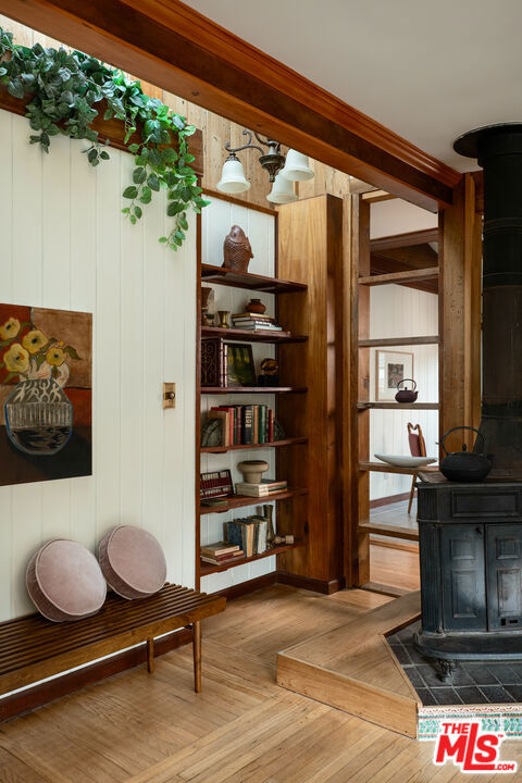 301 Museum Dr is a home for the curious, the contemplative, and the creative, with endless details that lend themselves to daily discovery and inspiration. This quintessential Mid-Century cabin feels imbued with that specific Mount Washington soul, the result of different owners over the decades layering on their own warmth and style, creating an effortlessly charming retreat rich with character and history. Original wood details abound, and quaint built-ins and nooks make for serene moments throughout the home. Large picture windows and a collection of skylights flood both floors with natural light, and patios from the kitchen and primary bedroom provide a casual indoor-outdoor flow. The kitchen and dining area have been opened up and completely redesigned with an intuitive layout and an inviting palette. Upstairs, two spacious bedrooms gaze out at the lush, terraced yard. The subtle-toned upstairs bath includes a secret portal (behind the full length mirror) to a significant space for added storage. The current owners have made many improvements to the home, including a new roof, new windows, new doors, and fully renovated kitchen and baths; a full list of updates is available upon request. Located just north of the Southwest Museum, 301 Museum Dr offers the benefit of Mount Washington’s tranquil landscape along with quick proximity to Fig, York, the Metro, Moon Canyon Park, the Self-Realization Fellowship, and of course Mt Washington Elementary.
