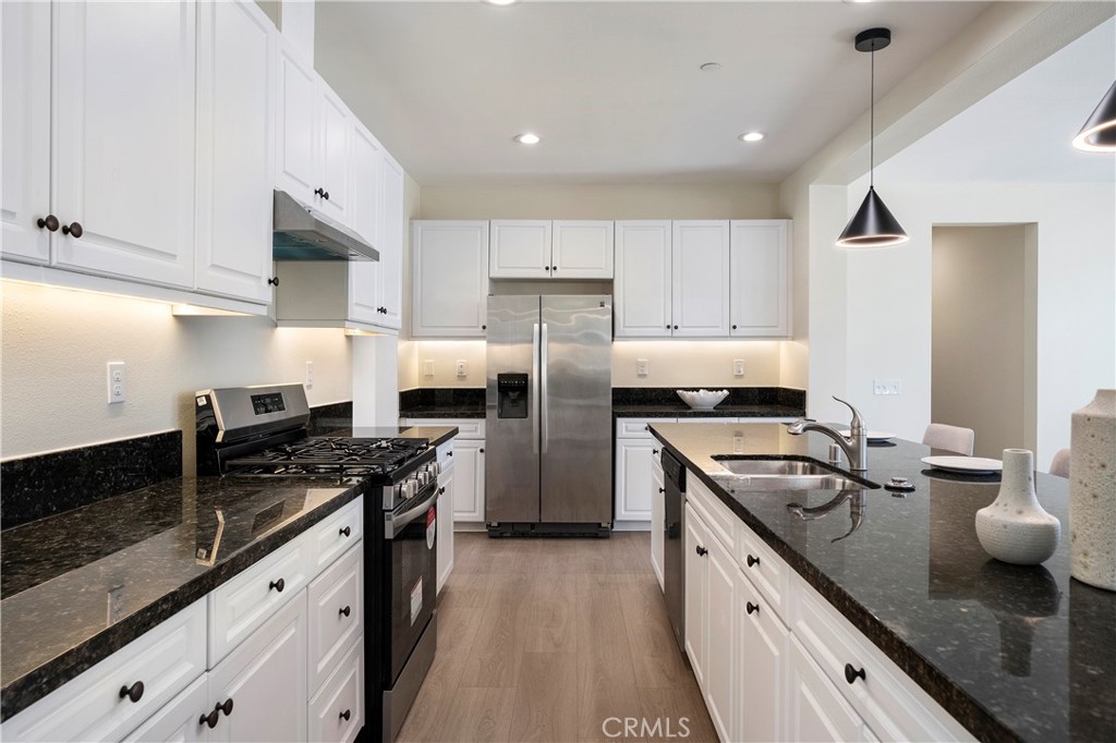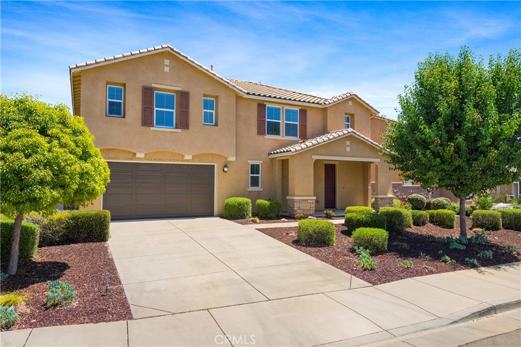 Welcome to Mahogany Hill community. This beautifully remodeled 5-bedroom, 3-bathroom home with move-in ready condition. When you step inside from a charm front porch, you will greeted by brand-new LVP floor throughout the downstairs living area. White cabinet kitchen with granite counter tops, large kitchen island, walk-in pantry & computer nook. Spacious dining area and living area leads to a bright out door space. The main floor includes a full bedroom and bath perfect for guests or muti-generational living. Upstairs has huge loft area easy convent to media room or office. Primary master suite has his/her closet, dual sink, separate tub & shower. Laundry room has utility sink and plenty of storage space. 2 additional bedrooms and shared bath. Large backyard with low maintenance landscape. This property has brand-new LVP flooring and carpet, fresh interior paint throughout include garage, brand-new modern light fixtures and 7 brand new ceiling fans in each room. Brand-new range hood with new stove and new garbage disposal in kitchen area. 3 brand-new toilets in each bathroom, whole house brand-new window blinds. The property close to I-15,I -215, Loma Linda Medical Center Murrieta, community parks, schools and entertainment. Don’t miss the turnkey open floor plan home opportunity. Property in a quiet, convenient neighborhood!