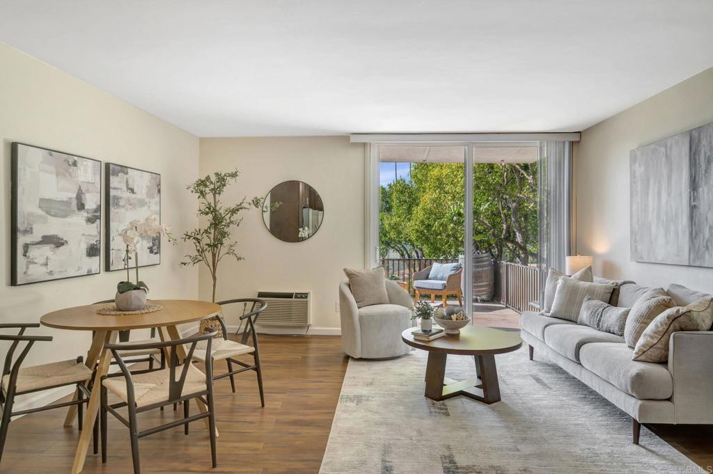 Rarely available, patio unit with courtyard view, at the gated community Pacific Isle. Beautifully updated and move in ready 2 bedroom 1 bath with resort-style living. Home includes stunning upgrades and finishes. Potential to add laundry at the hallway with HOA approval. Modern kitchen with refinished cabinets, new counters, sink, faucets, stylish cabinet handle pulls and stainless appliances. Relax and refresh in the gorgeous remodeled bathroom with coastal colored vibes, including neutral sleek shower-tub tile surround, new vanity, counters, mirror, lighting, flooring and fixtures. Both bedrooms with views of the courtyard include large closet with plenty of wardrobe space. Secondary bedroom ideal size for guest room, home office or both! The open layout flows to an amazing spacious patio where you may lounge, dine and enjoy the skies of San Diego. A rare find, this patio location, is over looking the lush courtyard, sparkling heated pool and tennis courts. Use of the gym, club house, volley ball, grilling, game room, community laundry all included! Unwind with the sounds of the tranquil waterfall pond in a tropical setting and stroll the peaceful walk ways. Not only private and gated, this community includes 2 tandem parking spaces in the detached carport style garage with easy quick access to the second floor either take the elevator or stairs! Other extras include AC wall unit, vertical window blinds, mirrored closet doors with oversized hall closet perfect for pantry, wine or coffee bar and storage. This central living quarter near to SD Airport, Mission Bay, Sea World, downtown, Fashion Valley, beaches, and Cali sunsets. Grocery, shopping, banking, transportation, eateries all at your finger-tips! A true coastal retreat with modern comfort and lifestyle, perfect for a primary residence or vacation home!