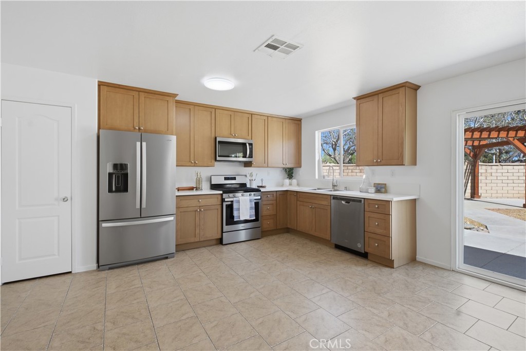 Beautifully updated single-story corner home in Lancaster! This move-in ready 4 bedroom, 2 bathroom home with a 2 car garage offers added privacy with only one neighboring property. Features include new flooring, fresh interior paint, and a new upgraded kitchen with new countertops, also extended into the bathrooms for a cohesive, modern look. The open floor plan seamlessly connects the living room, dining area, and kitchen, ideal for everyday living and entertaining. A split floor plan provides added privacy between the primary suite and secondary bedrooms. Home includes a dedicated laundry room with washer and dryer, plus all kitchen appliances are included, making this truly move-in ready. Enjoy a low-maintenance hardscape yard and a detached patio cover, ideal for outdoor relaxation. Conveniently located near major employers, Lancaster National Soccer Center, parks, and schools. Purchase plan solar to be assumed at $109.71/month. Great opportunity for first-time buyers or anyone seeking a turnkey home!