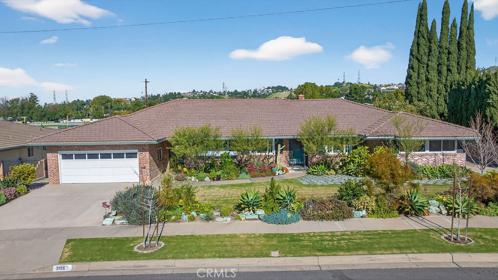 This expertly manicured single-story estate is perfectly located in an end of Cul de sac location. Impeccably maintained and expertly crafted, this homes charm starts from the street. Boasting a soft and colorful softscape, clean architectural lines, and spacious side yard parking, this Villa Park adjacent gem is a benchmark for the neighborhood. Architectural brick siding, ornate iron gates, crisp white windows with dark shutters, and custom rain gutters give this home a feeling of understated elegance the minute you walk up. Enter through quaint glass inlaid front door into a light and spacious entry. Framed with period specific stone and “original” hardwood floors, this home is the perfect mix of old word charm and modern utility! The spacious and inviting family room boasts floor to ceiling brick finished fireplace, stain grade exposed beam ceilings, etched glass sliders, recessed cans, and a great view of the immaculate back yard. Living room is spacious and open and enjoys the same etched glass sliders and backyard access as the family room. Kitchen is a dream with refinished stain grade cabinets, stone counters, SS appliances, custom tile splash, double oven, 6 burner cooktops w/ elegant hood, coffered ceilings, and sprawling counter space. The floorplan is incredibly versatile and boasts 4 beds and 3 baths in the main home and a completely self-sufficient 1/1 guest house. The guest house is complete with kitchenette, and elegantly finished bath. Separate laundry hook ups are in the garage to make this unit a stand-alone gem. Primary bedroom is spacious and inviting with backyard views, dual pane windows, and ample bath and closet space. Exterior utility closet space adjacent to the primary bath allows for plenty of room for a future reno. All bedrooms are spacious, light, and airy and enjoy ceiling fans for plenty of air circulation and flow. One of the most inviting in person features is the sprawling and warm covered patio and backyard. Expertly manicured by a caring green thumb and featuring too many fruit trees to mention, this yard is so relaxing and inviting. Previous pool was removed “with permits” to allow for a potential future separate ADU in addition to the currently attached guest house. The care and attention to detail this home boasts is unparalleled. Other incredible features include ceiling fans, potential RV access, lush landscape, fresh paint, permitted 200-amp panel, dual unit HVAC, EV charging service, and so much more!