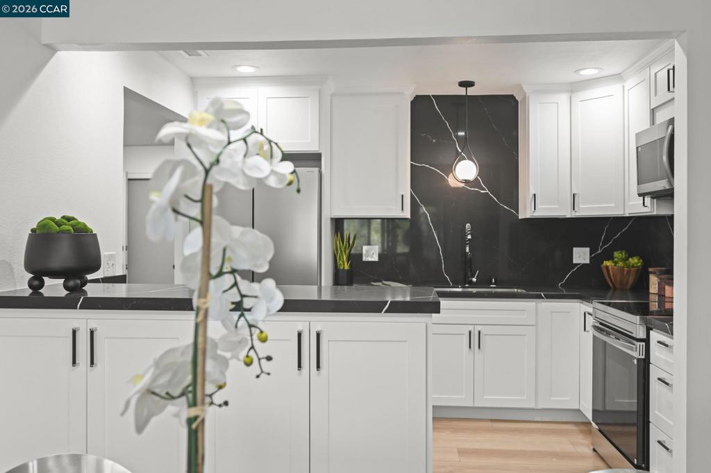 Rossmoor a 55+ gated community where there is something for everyone… From Golf to clubs. So many amenities & facilities and lots of new friends await you. Just bring you suitcases to this beautifully remodeled expanded Kentfield model with living space of over 1,600 sq ft (as per county records) ready for you to move in! Enjoy the peaceful setting with fabulous views of green hills and majestic trees. Over sized Primary bedroom with walk-in closet and newly appointed Primary bathroom now including a walk-in shower. Kitchen has new cabinets and Quartz countertops, new appliances, raised ceiling with canned lights. Fully painted and ceiling now smooth coat throughout. Full size washer and dryer located with-in the remodeled Hall Bathroom. Oversized Den with built-in storage for your office setup. Location is very private and quiet. Chair lift on entry steps if needed. Newer HVAC and water heater…. Don’t let this home pass you by,,,,,