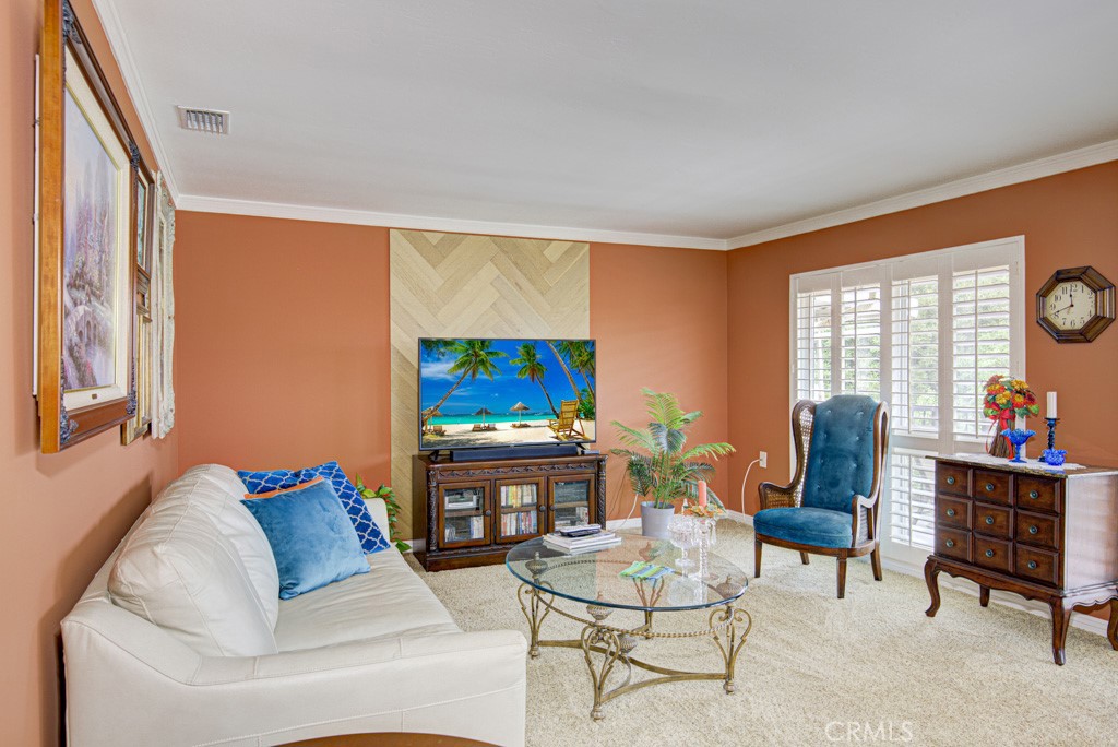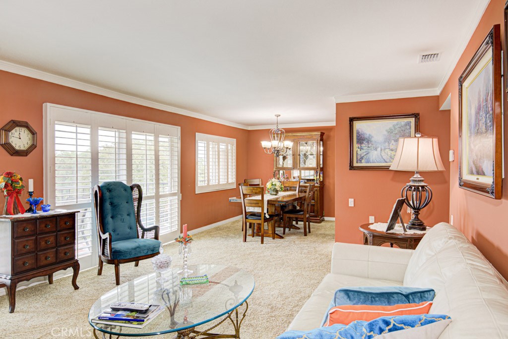 Welcome to 3111-P Via Serena South – a gorgeous remodeled two-bedroom, two-bath, upper LA BRISA residence in the Laguna Woods senior community. Situated in a quiet cul-de-sac far from busy roads and noisy highways, this home boasts a spectacular panoramic view of trees, hills and the Saddleback Mountains. The rear balcony is the perfect setting for outdoor entertaining, dining and relaxing while taking in the lovely view. The highly upgraded kitchen features ample cabinet storage with convenient pull-out drawers, a built-in recycling drawer, beautiful stone countertops and stainless-steel appliances. The spacious primary bedroom suite has ample closet storage with mirrored doors. The versatile guest bedroom could also serve as a home office, workout room or arts and crafts studio. Additional upgrades throughout the residence include smooth ceilings, crown molding and baseboards, ceiling fans in the bedrooms, plantation shutters, stunning engineered wood oak flooring and central HVAC. Bold colors throughout the home create a warm and welcoming environment. A full-size stackable washer/dryer is conveniently located in a hall closet. The nearby assigned carport has large cabinets for additional storage. Plus, there is ample guest parking in the cul-de-sac and street. Do not miss this beautiful home!