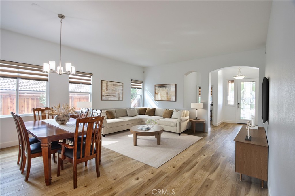 Welcome to this beautifully bright 3-bedroom, 3-bathroom home located in the highly desirable Temeku Hills community of Temecula. Filled with natural light, this turnkey residence features upgraded Natural Bevel Luxury Vinyl Plank flooring throughout the living room, bedrooms, kitchen, and dining area, creating a cohesive and modern look. The spacious, upgraded kitchen offers a center island with sink, granite countertops, and a built-in desk/workstation. Additional upgrades stainless-steel appliances refinished cabinets in Swiss Coffee, and a pantry closet with stylish bifold barn-style doors. The primary suite is a true retreat, featuring an en-suite bathroom with dual sinks, a stand-up shower, soaking tub, and walk-in closet, with direct access to a private veranda/patio overlooking the golf course? perfect for relaxing mornings or evenings. All bathrooms have been upgraded with floating vanities featuring soft-close pipe-chase drawers, granite countertops, LED lighted mirrors, rain-glass shower enclosures, upgraded toilets, sinks, faucets, and vanity lighting. Additional highlights include ample linen storage, a 2-car garage, new AC Pro HVAC system, upgraded window coverings throughout (Lafayette Allure Transitional Shades), and a large designer glass entry door. Residents enjoy access to the community clubhouse, featuring a heated pool and jacuzzi, fitness center, golf course, basketball and tennis courts, and game room. Ideally located near Old Town Temecula, Wine Country, and award-winning Temecula schools.