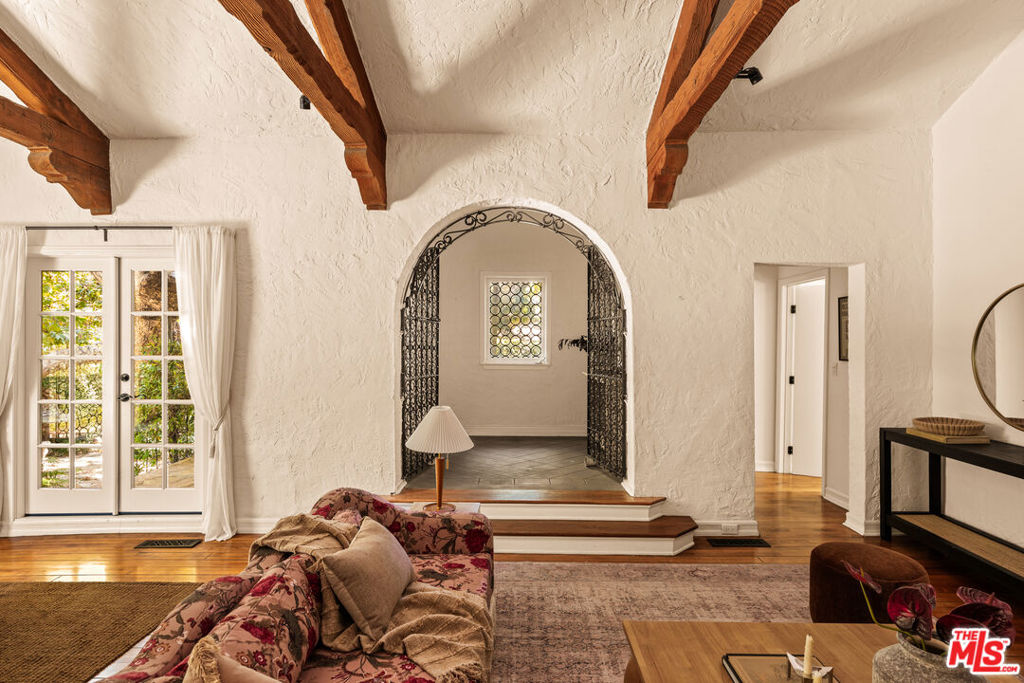 Tucked behind tall trees and a private gated entrance in the heart of the Hollywood Hills, this charming 1920s Spanish-style home is full of character and soul. From the moment you step inside, you’ll notice the authentic details that make this place so special carved wood beam ceilings, classic Spanish tiles, warm terracotta and hardwood floors, and French doors that open up to lush gardens and peaceful outdoor spaces. With 4 cozy bedrooms and 3.5 bathrooms, the home strikes the perfect balance between vintage charm and modern comfort. Every room feels welcoming and lived-in, with thoughtful updates that still honor the home’s original style. Up above the main house, there’s a spacious flat grassy area with raised veggie beds ideal for hosting friends, lounging under the stars, or enjoying quiet afternoons surrounded by nature. Multiple patios and garden nooks make outdoor dining and relaxing feel like second nature. There’s also an attached garage for extra storage and updated systems throughout the home, so you can enjoy the old-world charm without any of the headaches. This is a rare find: a warm, romantic retreat that captures the essence of classic Hollywood with all the conveniences of today.