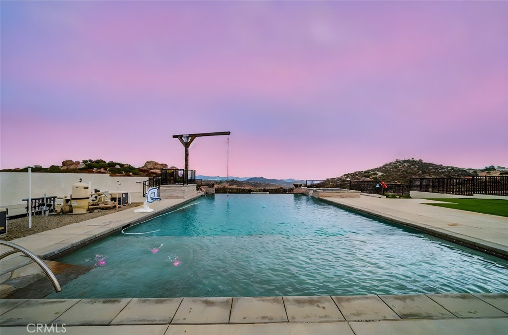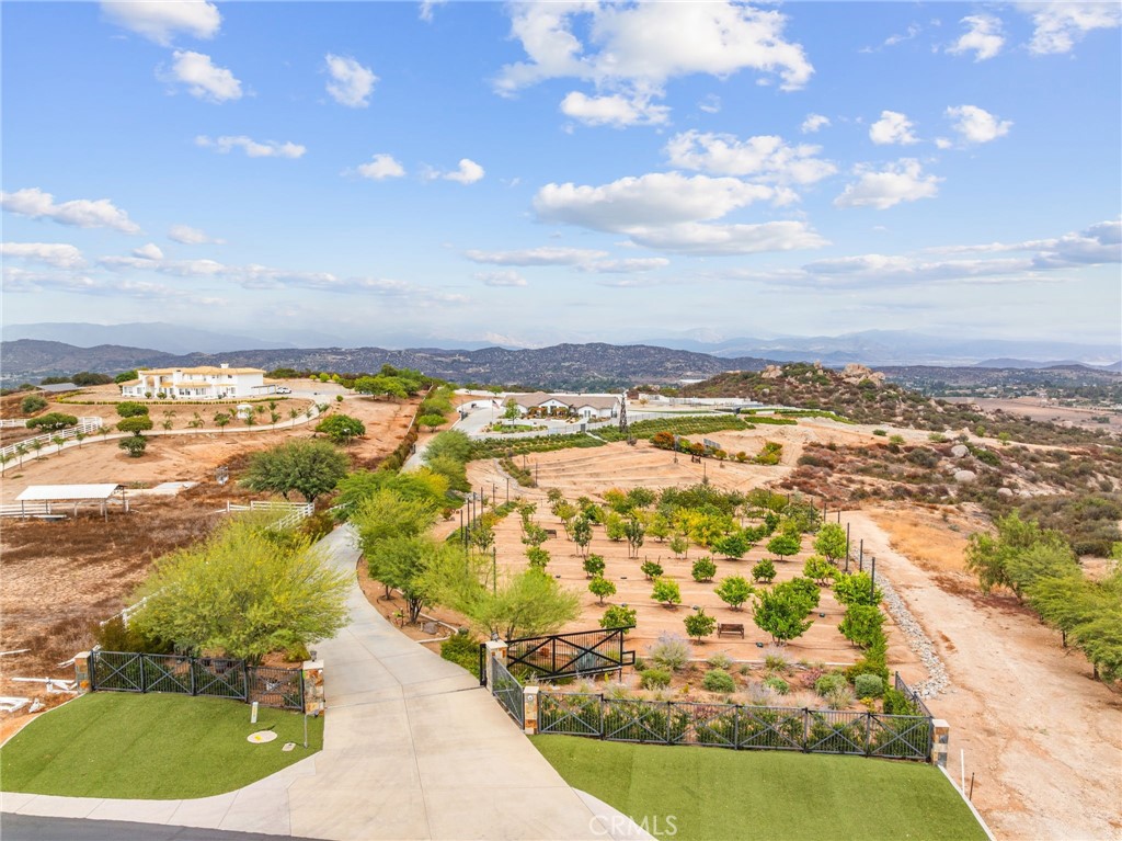 Welcome to 31930 Via Del Senor in The Ranch at Sky Mesa — a prestigious, gated community of private estate homes. Your new residence awaits on a 5.04-acre property with sweeping views of Diamond Valley Lake and surrounding mountain vistas. This 3,284 sq ft single-level estate sits at the end of a 400-yard cement driveway, offering elegance and privacy inside and out. The grounds feature a 50+ ft infinity-edge Pebble Tec pool with spa and splash pad, a dedicated gated dog park, and a flourishing orchard of 75 fruit trees on drip irrigation — all beautifully accented with low-voltage landscape lighting and string lights throughout the orchard. Start your mornings with coffee as hot air balloons rise over the lake, spend afternoons poolside, or savor margaritas in the spa under the stars. Inside, you’ll enjoy expansive living areas, a gourmet kitchen, and a garage converted to a home gym, complete with a dedicated bath designed for a dry sauna, cold plunge, or guest lockers. With solar thermal panels dedicated to heating the pool, usable flat acreage, and the security of a gated community, this property offers a rare blend of sophistication, recreation, and serenity.