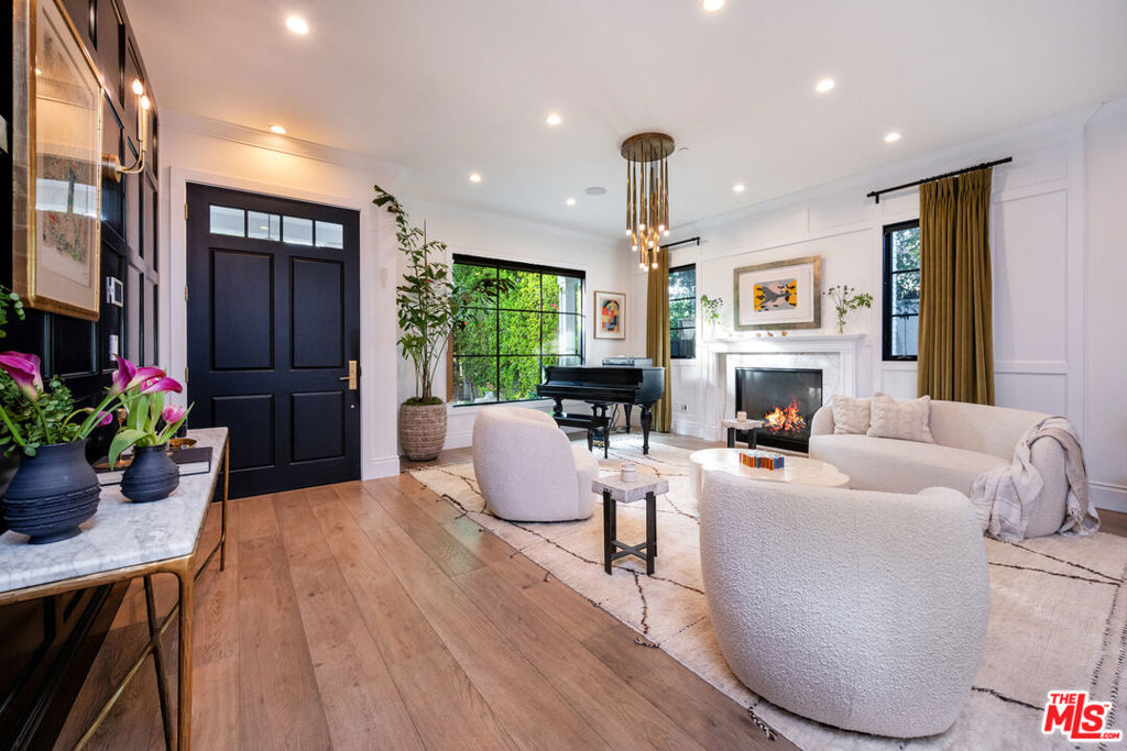 Beautifully designed and impeccably built in 2017, this mint-condition private 6-bedroom, 6-bath smart home is ideally located in the heart of Beverly Grove, offering the perfect blend of traditional charm and contemporary sophistication. From the moment you enter, the home exudes a warm and inviting ambiance, thoughtfully crafted for both comfortable everyday living and elegant entertaining.The first floor features expansive formal living and dining spaces creating an effortless sense of openness and comfort. At the heart of the home is an exceptional custom eat-in kitchen, complete with a large walk-in pantry and a 100-bottle wine refrigerator. The kitchen flows seamlessly into an inviting great room with 20-foot stackable bi-fold doors, opening to a spacious covered patio for true indoor-outdoor living.The main level also includes two generously sized bedrooms with en-suite baths and a stylish powder room. Upstairs, three additional en-suite bedrooms with ample closets provide comfort and privacy, while the stunning primary suite serves as a peaceful retreat, showcasing dramatic volume, 14-foot vaulted ceilings, a massive walk-in closet, a luxurious spa-like bath, and a private patio overlooking the backyard.The meticulously maintained grounds feel like a private resort, featuring a large grassy yard, trellised outdoor dining area, and a sparkling pool with waterfall, Baja shelf, and spa. This move-in ready home, maintained in pristine mint condition, offers the ultimate warm and welcoming lifestyle in one of Los Angeles’ most sought-after neighborhoods.