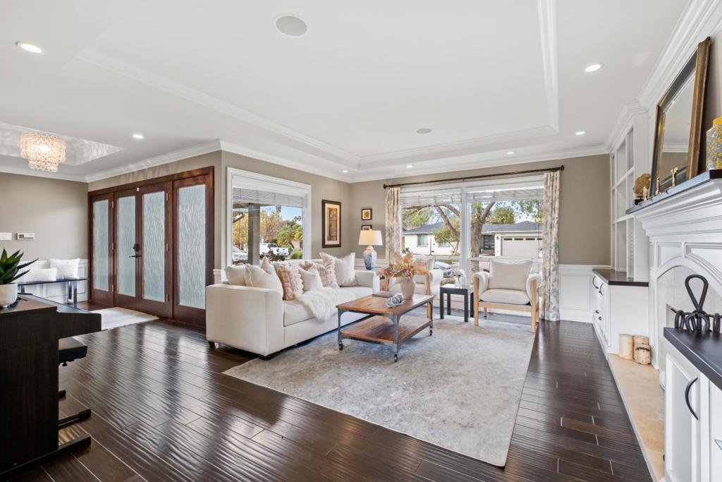 *Beautiful and elegant Santa Teresa home with top rated schools. Has been reimagined with exceptional craftsmanship & quality. This home sits on an oversized nearly 8000 sq ft lot inside the Rancho Santa Teresa Swim & Racquet Club neighborhood that offers pools, hot tub, childrens splash pools and clubhouse within walking distance. *This home features over $400K in quality upgrades starting with the oversized Paverstone driveway and wide walkways and large south facing rear patio. Beautifully landscaped yard and irrigation system. Solar system to help offset electric bills on a sun drenched roof. An expansive custom door system leads you into an elegant space full of custom trim work, crown molding, and raised ceilings in the foyer, living room, dining room and primary bedroom. *The living room features custom fireplace & beautiful custom built in cabinetry and recessed lighting. Beautiful wide-plank hand scraped Engineered Wood flooring is seen throughout the home. The timeless kitchen boasts a large peninsula, over the cooktop pot filler, gourmet built in appliances, counter depth fridge & ultra quiet dishwasher. Close to walking trails, mountain / foothill hiking, golf and top rated schools – Santa Teresa Elem (9/10), Bernal Intermediate (8/10) & Santa Teresa High (9/10).