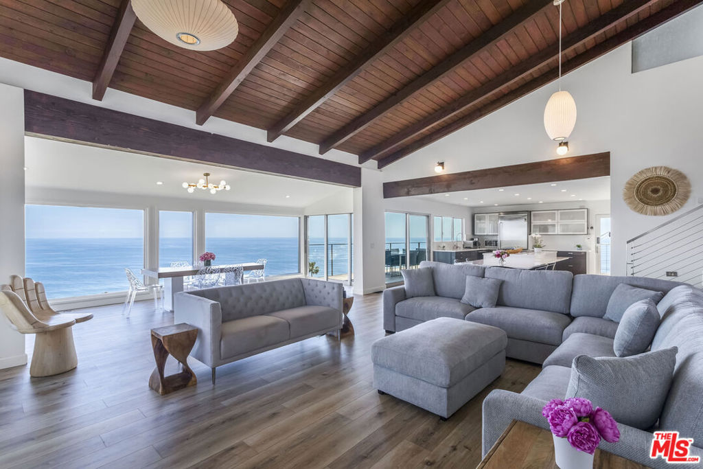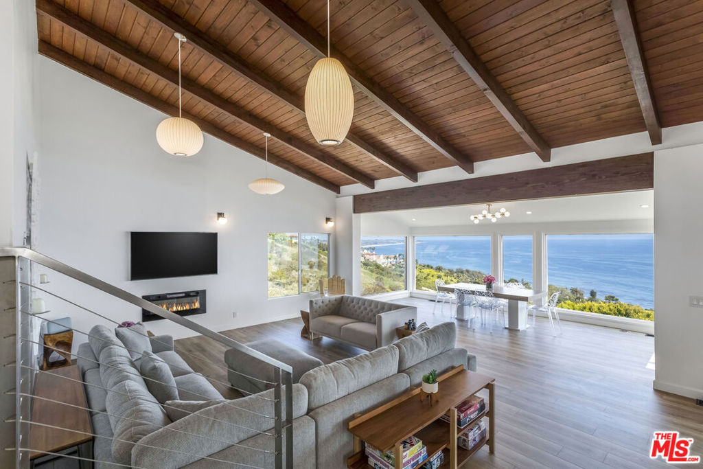 Views Views Views!!! This home is absolutely stunning!! Welcome to your dream home above the Pacific Ocean, where spectacular panoramic views stretch from iconic Zuma Beach to Point Dume, and even as far as Catalina Island and the Channel Islands. This beautifully reimagined three-level, four-bedroom, three-bath, 2732 sqft – 36,073 Lot residence blends high-end design with warm coastal charm perfect for families or anyone seeking a luxurious yet inviting retreat. Designed by acclaimed architect Vitus Matare, the home is filled with natural light and thoughtful details. Soaring exposed wood beams and rich textures add character to the spacious, open layout, ideal for both everyday living and entertaining. At the heart of the home is a chef’s dream kitchen, complete with top-of-the-line Viking appliances, beautifully cabinetry, lots of storage, pull out drawers, a custom oversized island, and a seamless connection to indoor and outdoor living spaces perfect for family gatherings or hosting friends. Glass walls open to expansive IPE wraparound decks and private balconies ideal spots to enjoy an early morning breakfast, watch for dolphins and whales, or unwind as the sun sets over the ocean. Each level offers cozy sitting areas and private nooks, making it easy for everyone to find their favorite space. Just two minutes from Pacific Coast Highway and tucked at the end of a quiet cul-de-sac, this home is moments from world-famous El Matador Beach, Malibu’s top schools, dining, and shopping. Plus, with EV chargers on-site, it’s ready for your modern, eco-conscious lifestyle. This is more than a home it’s a place where unforgettable memories are made.