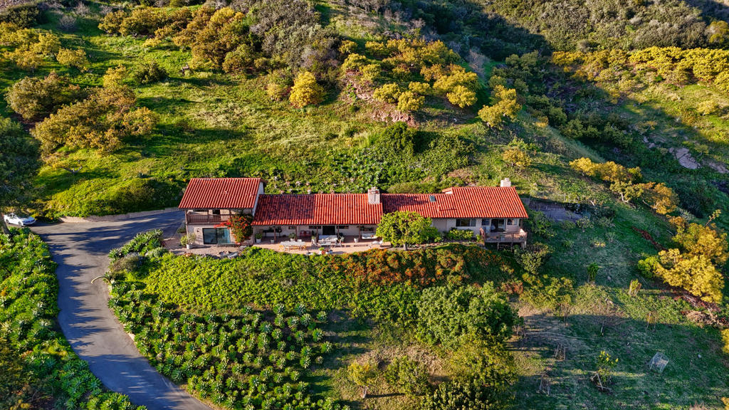 Perched in the foothills of Carpinteria with sweeping ocean views and direct access to the Santa Barbara Polo & Racket Club, this Hacienda-style ranch offers a rare blend of coastal living and premier equestrian amenities.The home features 4 bedrooms, 4 bathrooms, one of which is a large private bonus suite with its own living area, four double beds, full bath, and separate outdoor space with ocean views–ideal for guests or extended stays. Two bedrooms are en-suite, including a private upstairs suite with dual balconies, and a second suite on the opposite wing with a large balcony overlooking the ranch, ocean, and polo fields.Vaulted ceilings, expansive windows, and sliding doors showcase panoramic ocean, mountain, and field views throughout. Bright interiors and spacious living areas open to shaded patios, perfect for indoor-outdoor living. The home maintains a unique retro ranch style, thoughtfully updated to preserve its original character.Equestrian facilities include a 32-stall covered pipe corral, 7 wood-fenced paddocks, tack room, and direct private access to polo fields. The property also features mature avocado and cherimoya orchards.Set on scenic acreage with terraces, courtyards, and multiple view points–just minutes from beaches, hiking, and downtown Carpinteria. A truly one-of-a-kind coastal ranch opportunity.
