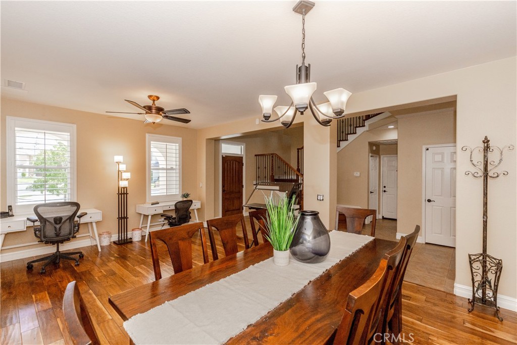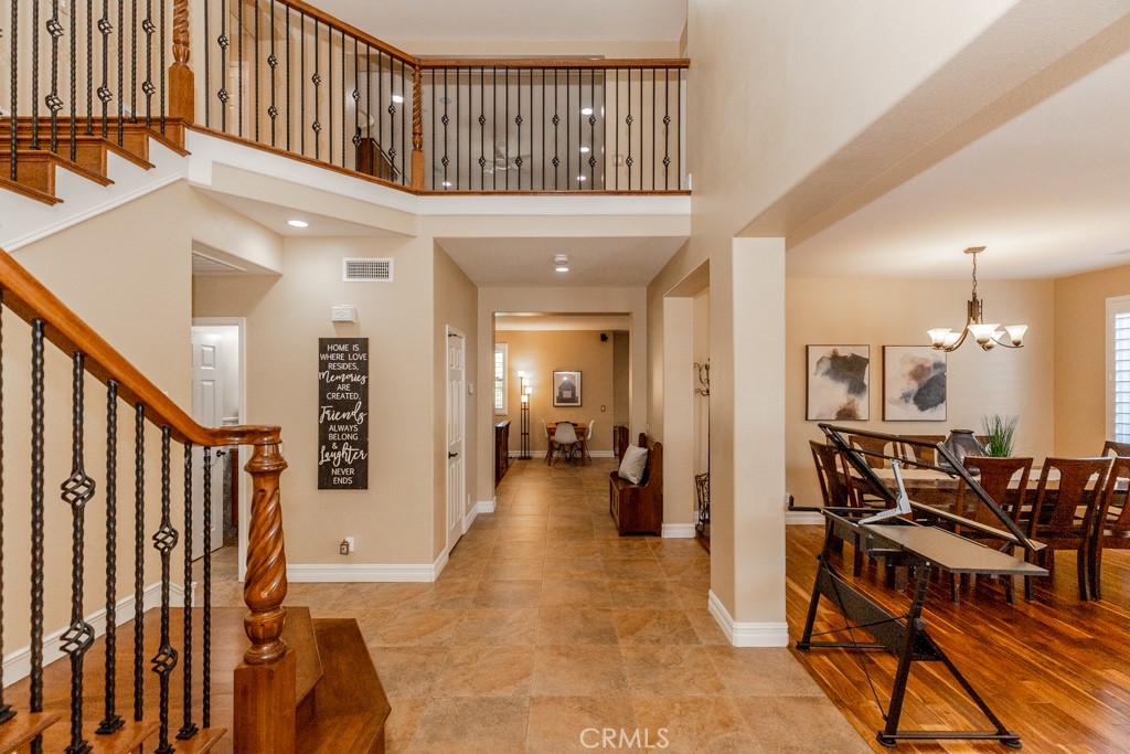 ***UPGRADED SOUTHWEST CORONA VIEW HOME*** Nestled on a quiet street with no rear neighbors, this beautifully enhanced home offers sweeping views of the Cleveland National Forest and city lights all with NO HOA. From the moment you arrive, the fresh exterior paint, upgraded garage door, and custom front entry create exceptional curb appeal. Upon entry you’ll find upgrades including, engineered hardwood flooring, a stunning wood-and-wrought-iron staircase, new windows, canned lighting and more. Featuring a formal living and dining room, chef’s kitchen that has been thoughtfully redesigned with a large center island, custom cabinetry, and seamless flow into the open family room, ideal for entertaining and everyday living. A built-in desk in the family room provides a perfect workspace while the fireplace provides the perfect spot for those cozy cravings. Upstairs, a spacious loft offers flexibility for your needs and leads to a large balcony that spans the rear of the home an ideal spot to enjoy peaceful shade and panoramic views. The primary suite features private balcony access, a spa-inspired bathroom featuring a whirlpool soaking tub, mirrored closet doors, and upgraded fixtures and vanity, a walk in closet with built-in drawers and cabinetry. Dont pass by the exceptionally remodeled guest bathroom and shower and the fully remodeled laundry room with custom cabinetry that combines beauty with function.  Step outside to a peaceful and private backyard with a full patio cover from the above balcony and no homes behind. A gas line has been run for outdoor cooking, new light fixtures are set on timers, and the rod iron backyard fence and gate have been replaced.The sprinkler system and control panel ensure easy maintenance. Hosting guests is no problem with the home’s extended driveway that can accommodate up to four mid-size SUVs. Additional upgrades include, smart-home features including hardwired security cameras, a wired alarm system with sensors, remote-controlled fans throughout, and all-LED lighting in closets and pantry. Comfort and efficiency are supported by a whole-house water softener, reverse osmosis drinking system, whole-house water filtration system, and a newer water heater. Enjoy the space of a 3car tandem garage! With extensive upgrades throughout, a functional and flowing layout, and an unbeatable location near the 91, 71, and 241 freeways, this home-with-a-view is a rare opportunity in one of Corona’s most sought-after neighborhoods.