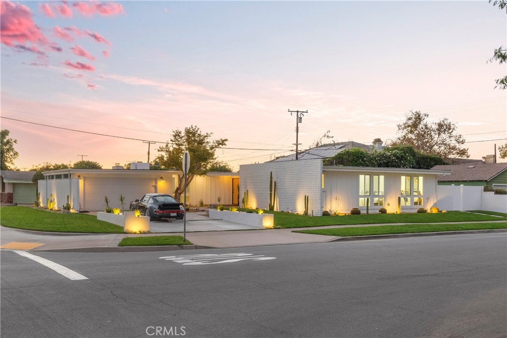This fully reimagined mid-century residence was taken down to the studs and comprehensively renovated in 2025, upgraded with modern systems & components, all while preserving its classic architecture. The home now features new electrical (weatherhead, 200-amp panel, & wiring), new drywall throughout, new HVAC condenser with sealed in-slab ducting (existing), new driveway with faux grass inlays (2025), new Gem-Core luxury vinyl plank flooring (20205), new Trex decking systems (front & back), along with new interior & exterior paint (2025). The designer kitchen (2025) features matching Stainless Steel Thermador appliances with Bluetooth technology, & a custom-built-in Thermador refrigerator/freezer with 3 cameras! Handcrafted custom rift-oak cabinetry adorns the kitchen, the island, & extra large pantry with pull-out drawers. The beautiful, gleaming counters are made of porcelain quartz & shine brightly thanks to the kitchen being open to the living & dining spaces, allowing light to flood into the room. The open concept living areas make this home great for entertaining. The bathrooms were completely rebuilt with Kohler toilets, designer hardware, curated tile shower/bath surrounds, and custom vanities adorned with Pottery Barn lighting. The fully finished two-car garage was outfitted with drywall, recessed lighting, epoxy floors, EV-charger-ready wiring, & a custom-insulated garage door with a new door operating system. Behind the garage is an entire outdoor space approximately 15′ x 12′, perfect for a garage extension, a private storage area, or a cement pad for a golf cart! The exterior of this home features new landscaping and hardscape, manicured lawns with sprinklers (front & back), & exterior lighting. Maintenance on this home is easy thanks to integrated technology, which lets you customize all irrigation & exterior lighting & maintain all your kitchen appliances through apps! With 4 bedrooms, 2 bathrooms, & approx. 1,800 sq. ft. (1,784 sq. ft. per the tax records) of impeccably rebuilt living space, this home delivers you turnkey condition, modern systems, & long-term peace of mind — all within the award-winning Los Alamitos Unified School District. Special Note – The wall between the primary bedroom & the room to the North is non-load-bearing, according to a contractor, meaning you can convert the two bedrooms into a large primary suite with a walk-in closet (Buyers to verify with own contractor). Ask for further details.