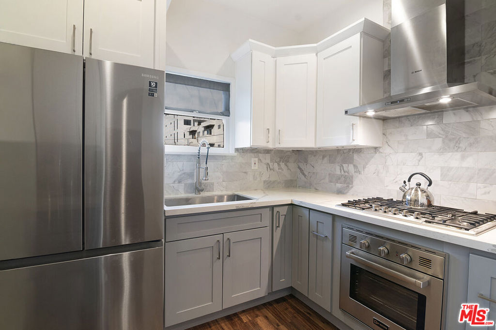 Light-filled and bright 2-bedroom Beverly Hills condo located in a charming boutique 1930s walk-up. This inviting home features wood flooring and recessed lighting throughout, with an open living and dining floor plan that creates a comfortable, relaxing atmosphere. The fully remodeled kitchen is equipped with Bosch, Verona, and Samsung stainless steel appliances, stone countertops, and ample cabinet storage. The second bedroom offers custom built-in bunk beds with integrated storage, ideal for flexible living. All utilities are included in the HOA dues – water, sewer, trash, electricity, and gas providing exceptional value. Conveniently located just minutes from the renowned Beverly Hills Village, Cedars-Sinai Medical Center, West Hollywood, and an array of shops, restaurants, and entertainment.